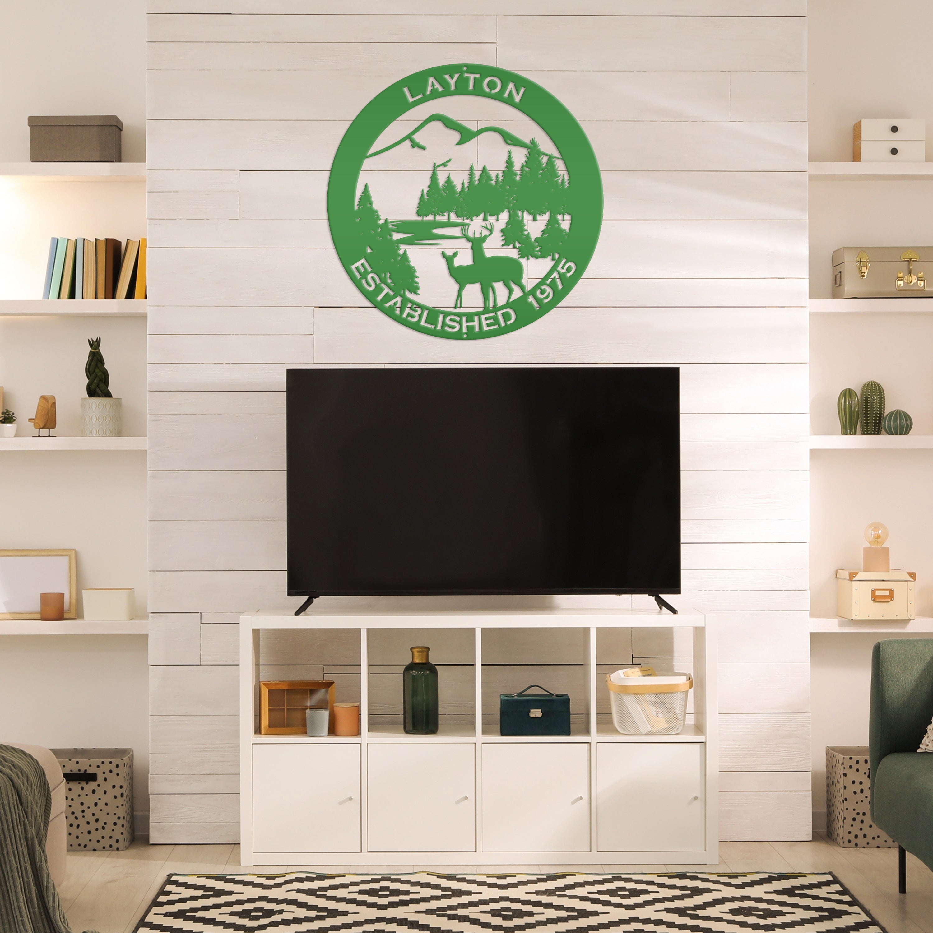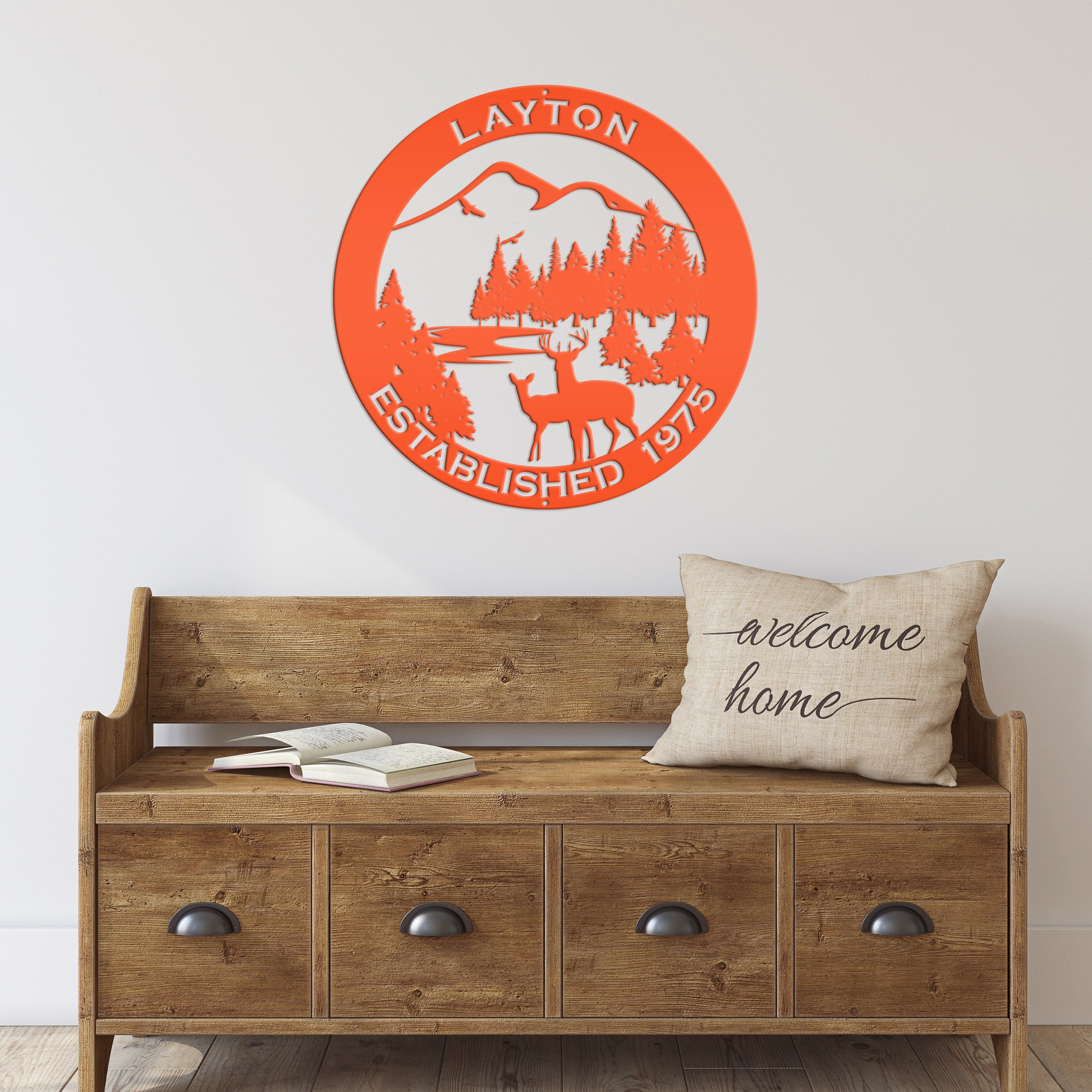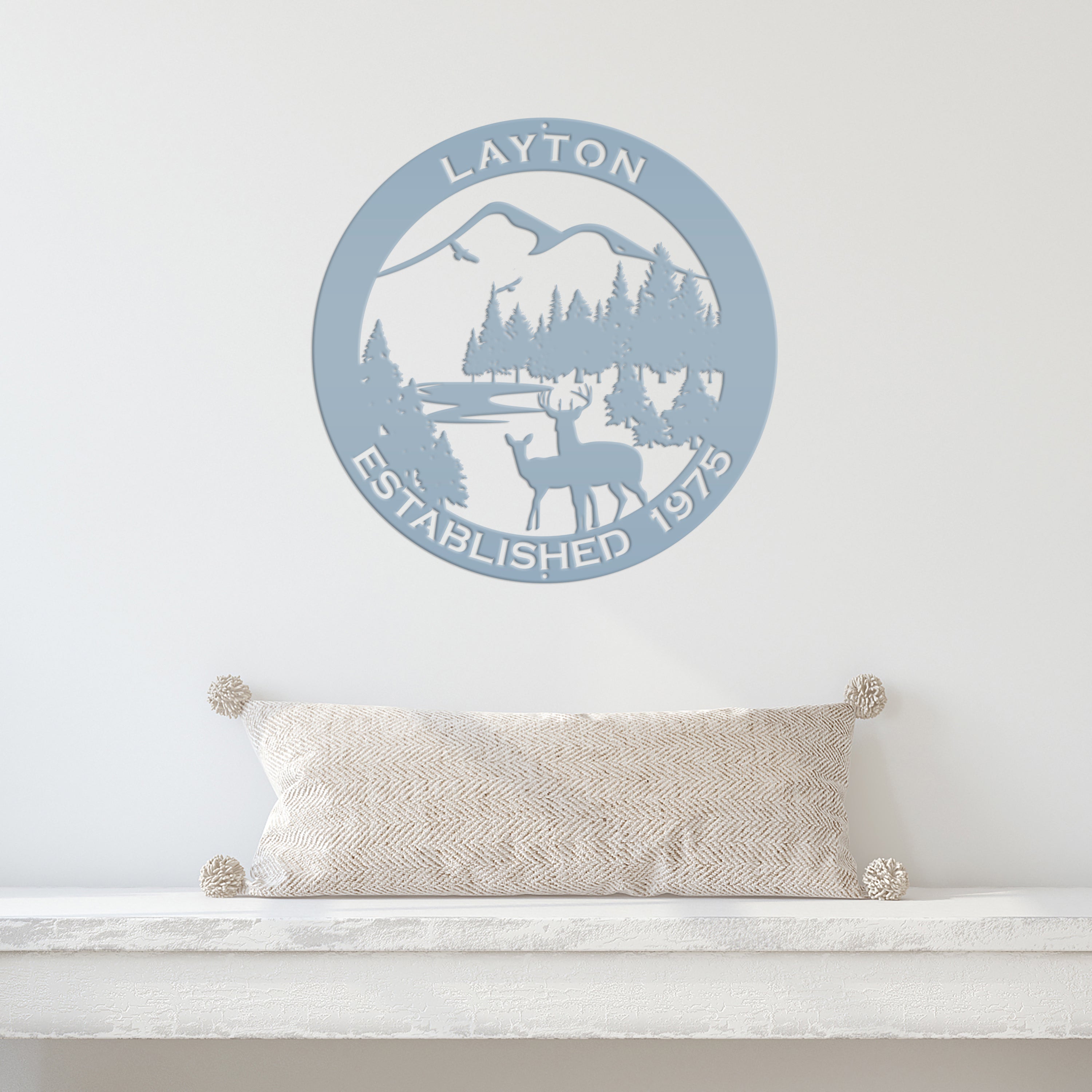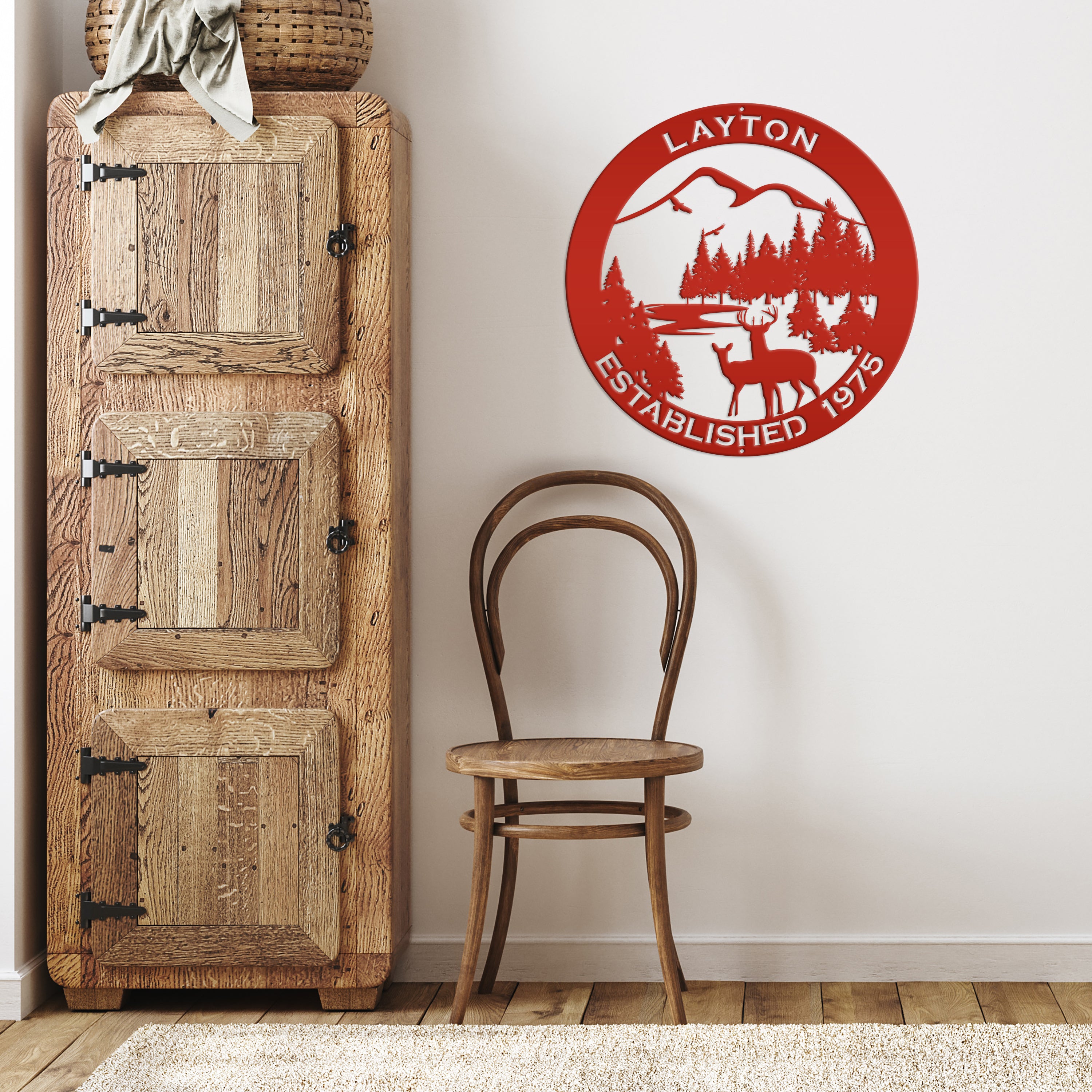 This Personalized Family Name Outdoor Mountain Deer Scene with Established Date Round Metal Sign is the perfect decor for any home. Also makes a great gift for the hunter in your life.