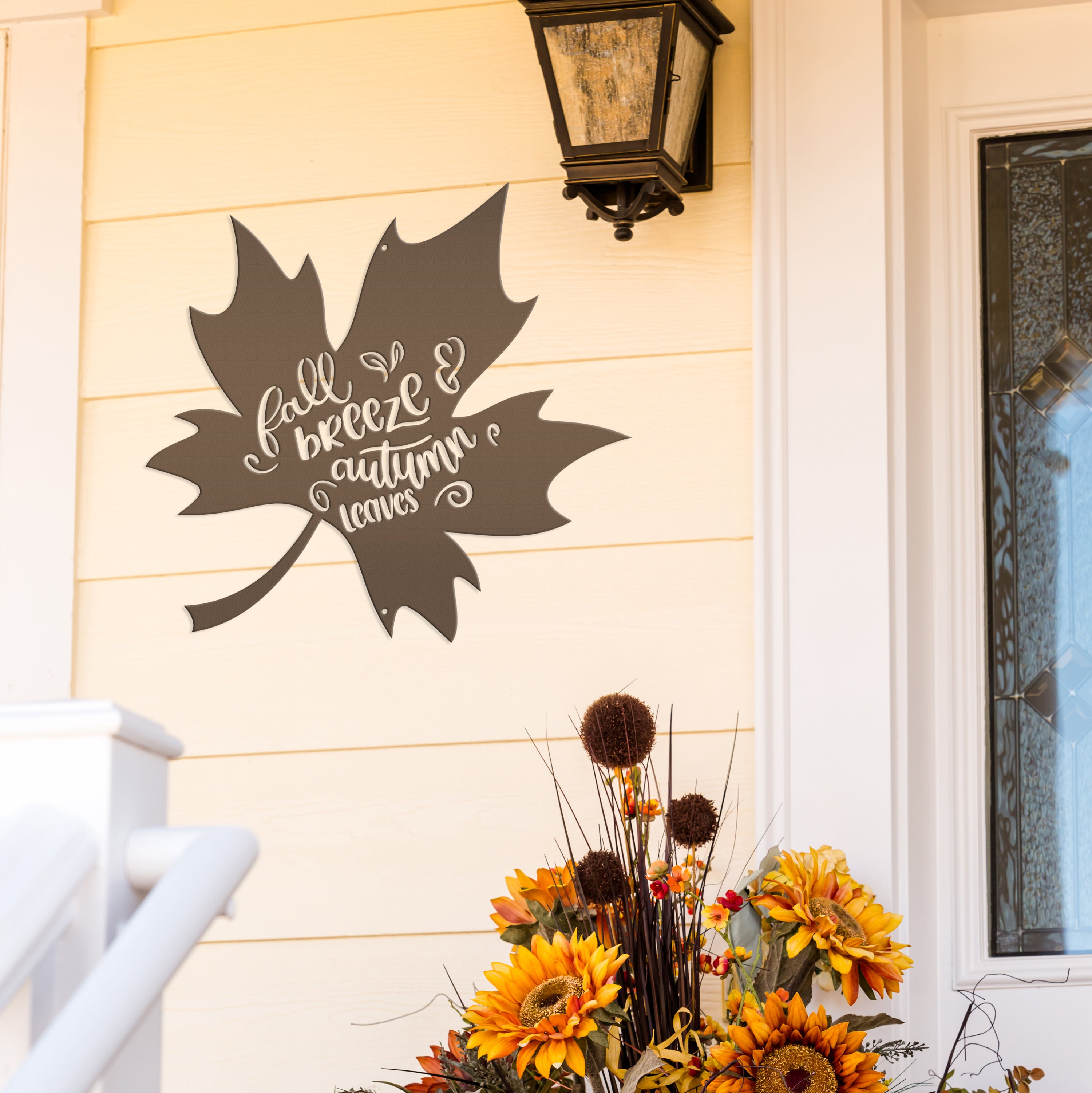 Celebrate the season with our Fall Breeze and Autumn Leaves Metal Sign. It beautifully encapsulates the essence of fall decor, making it an ideal addition to your seasonal celebrations, Thanksgiving gatherings, or simply as a daily reminder of the beauty that autumn brings. This Fall sign makes a great door hanger for all your fall celebrations.