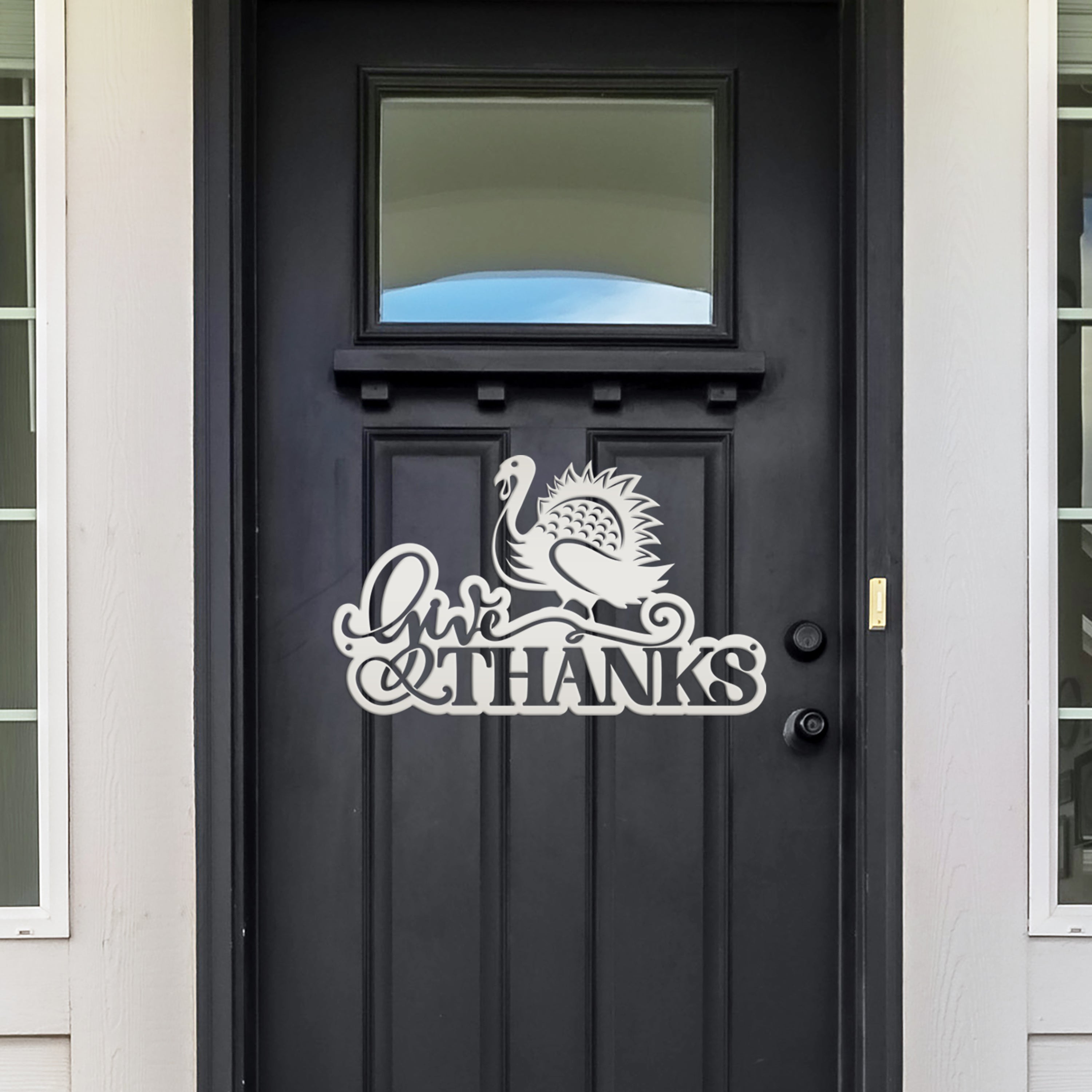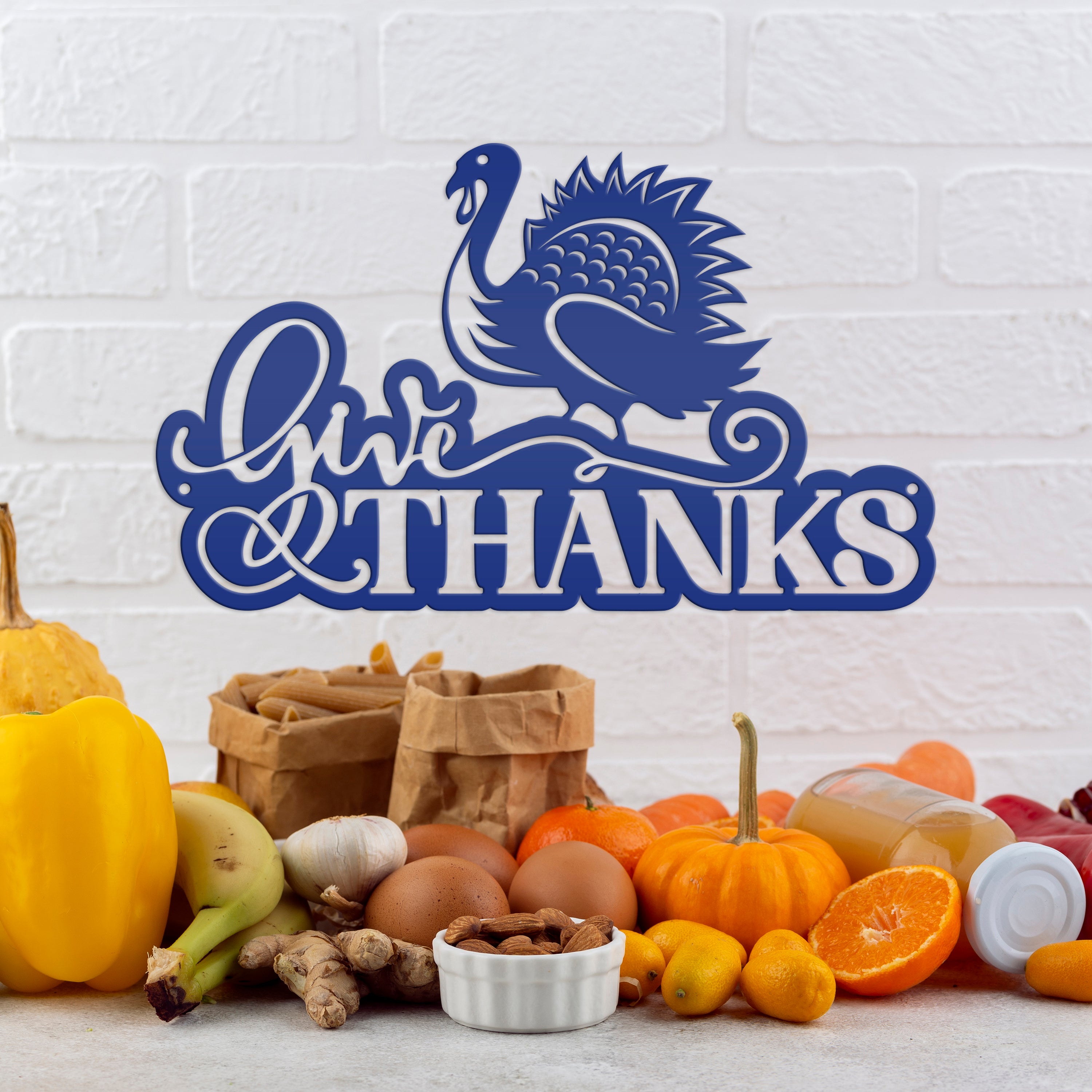 This Give Thanks Turkey Metal Sign is the perfect decor for your home. Sizing is for the width of the sign.