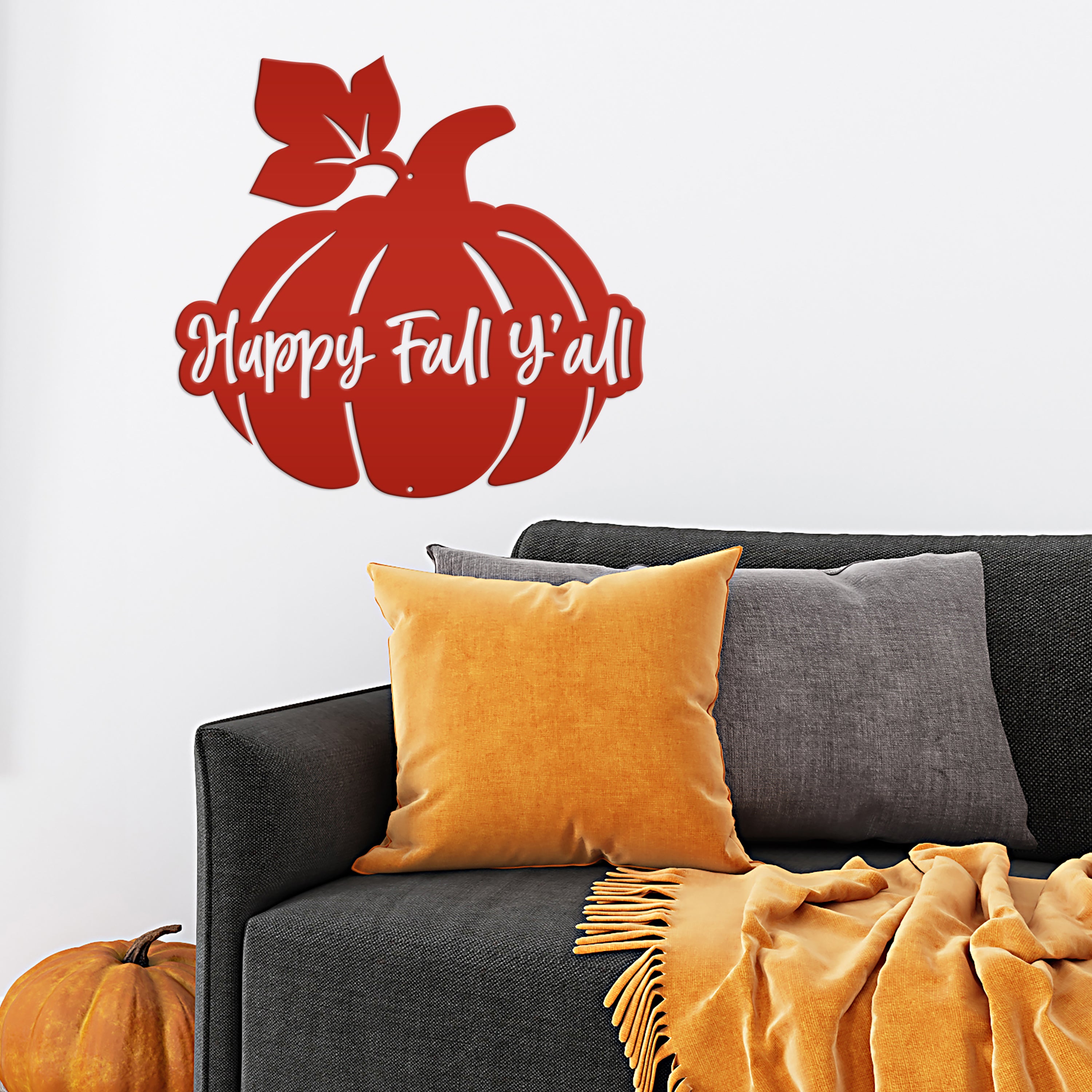 Our Happy Fall Y'all Pumpkin Autumn Décor Metal Sign is the perfect Fall décor for any home.  Sizing is for the width of the sign.