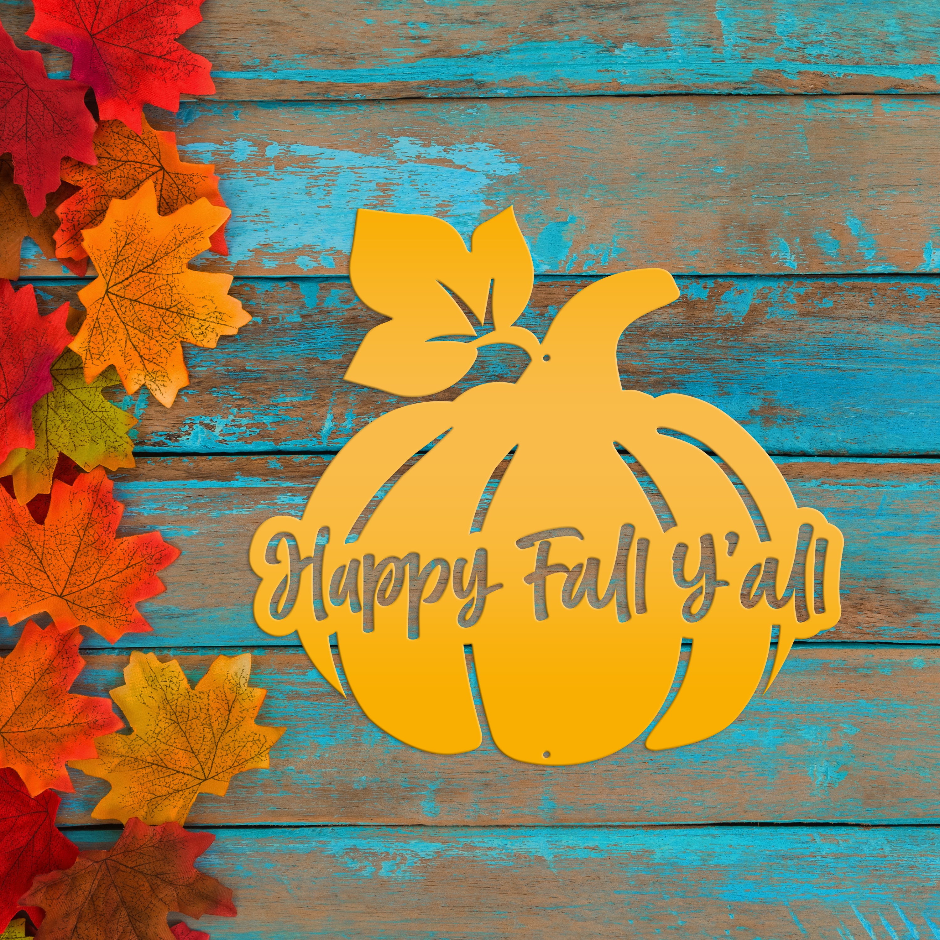 Happy Fall Y'all Pumpkin Autumn Décor Metal Sign-Door Hanger