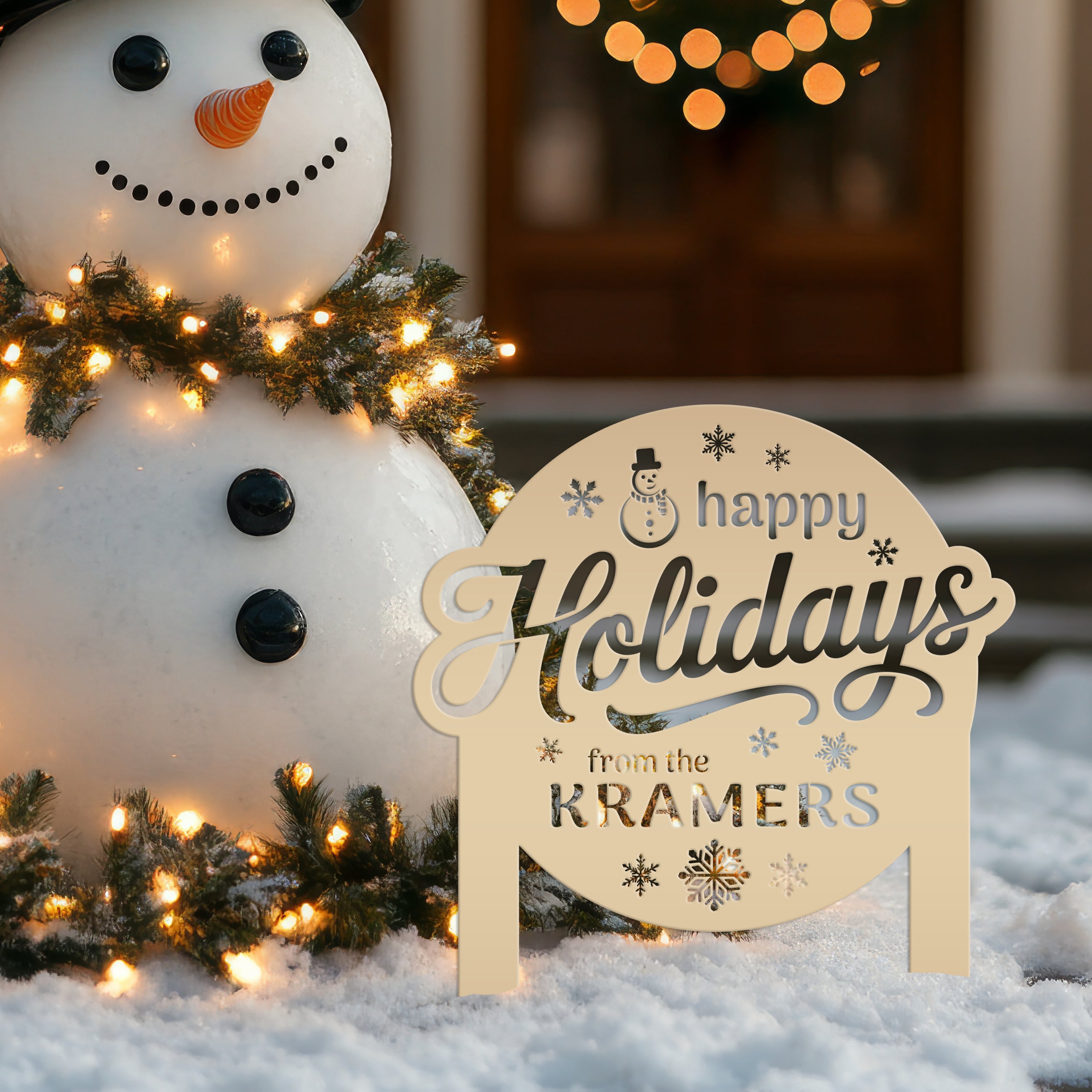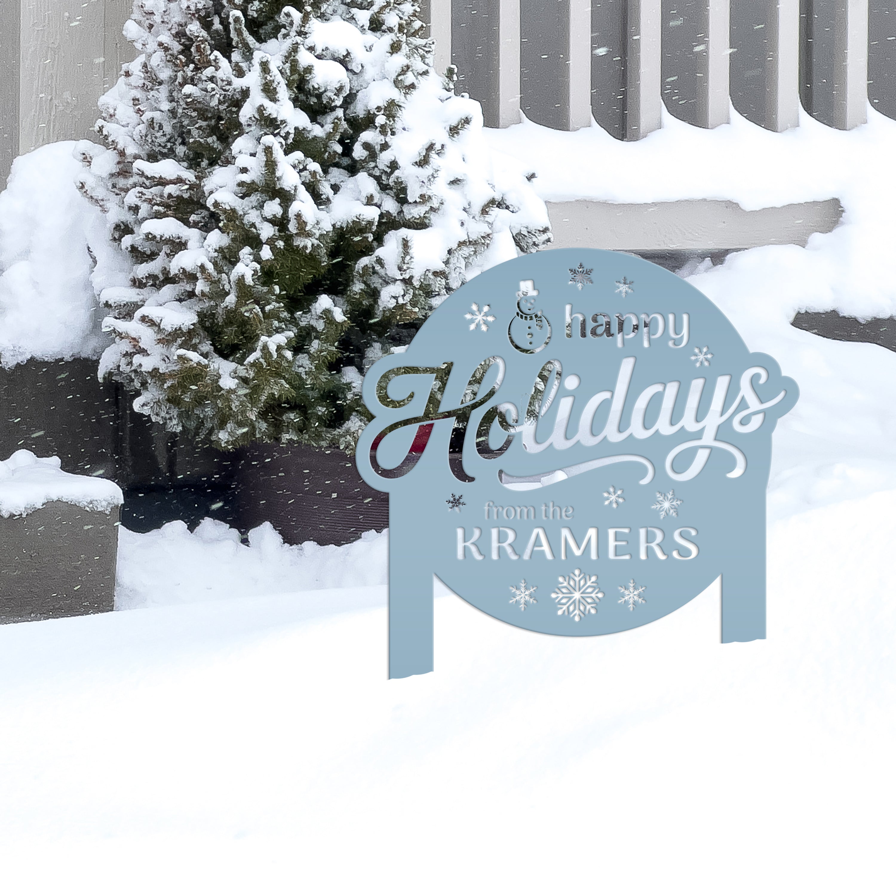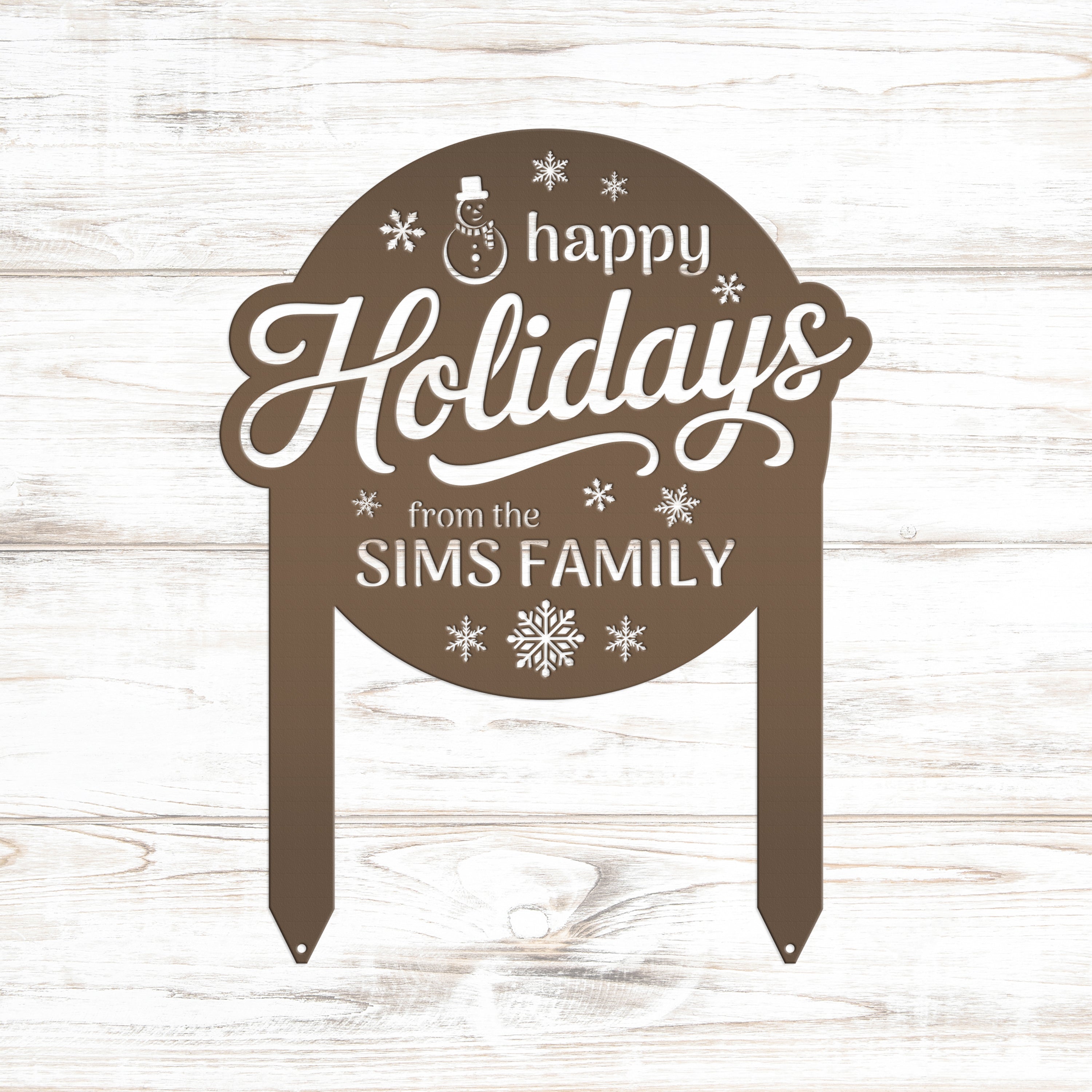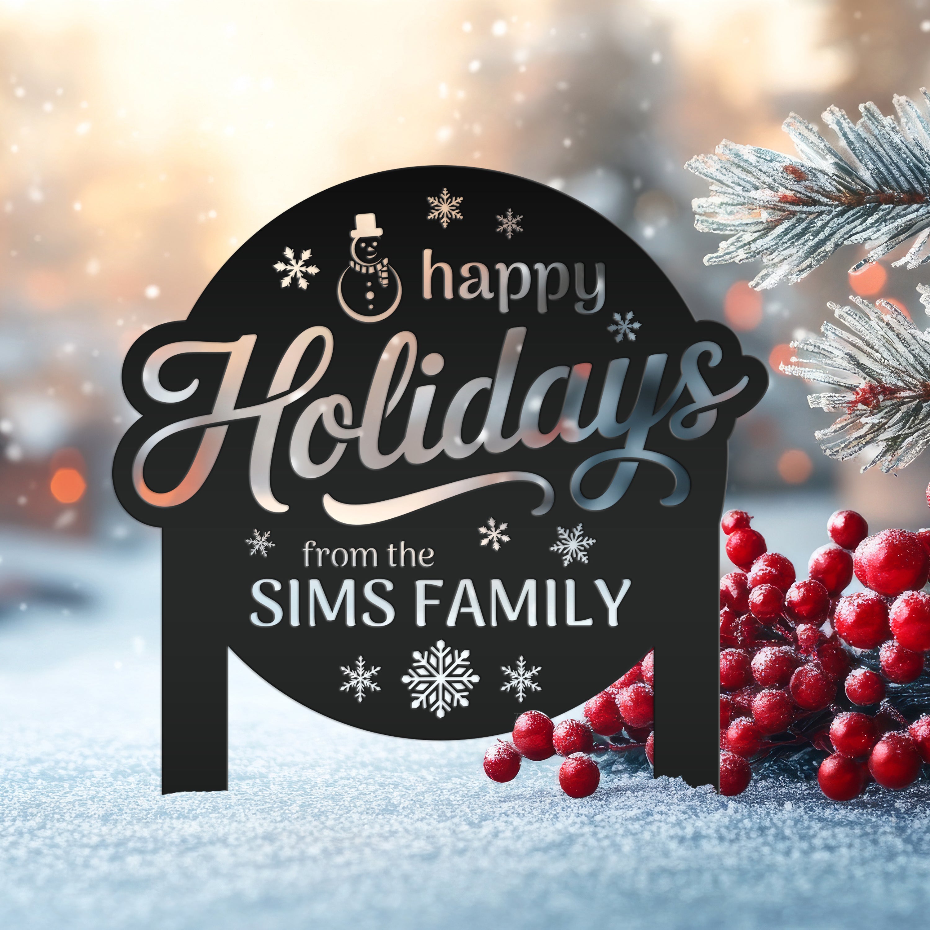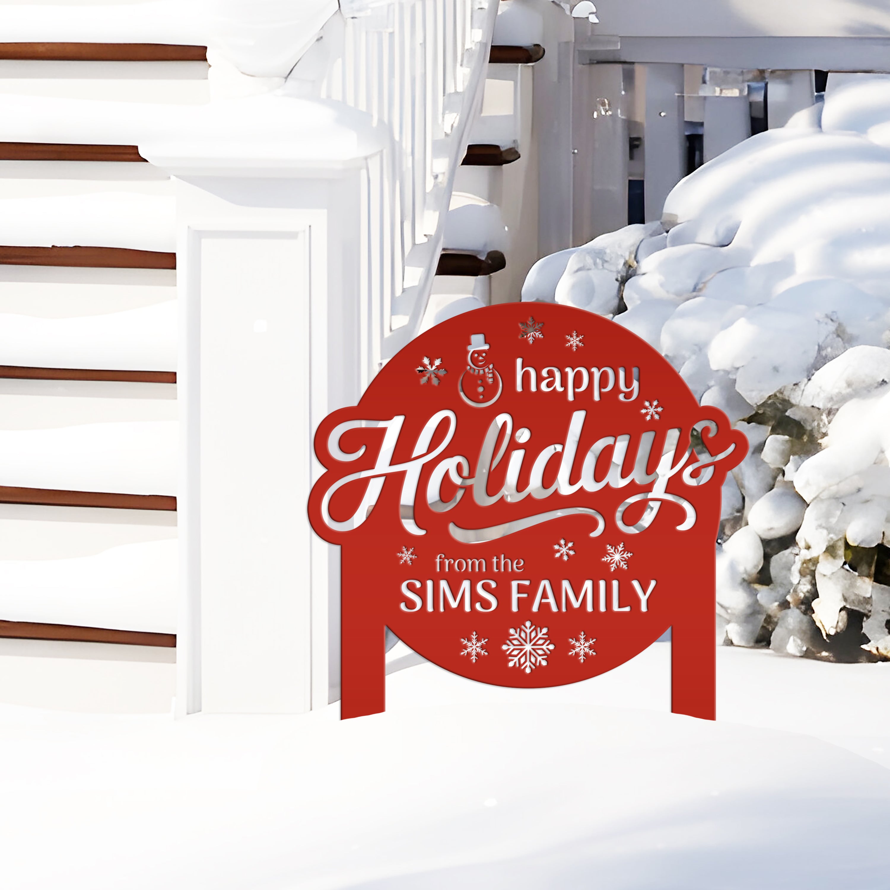 Spread cheer this season with our Happy Holidays Metal Yard Stake! This charming yard decoration adds a festive touch to your outdoor space while showcasing your unique style. Made from durable metal, it's perfect for displaying your holiday spirit. Brighten up your yard and celebrate the season with this beautiful holiday stake!