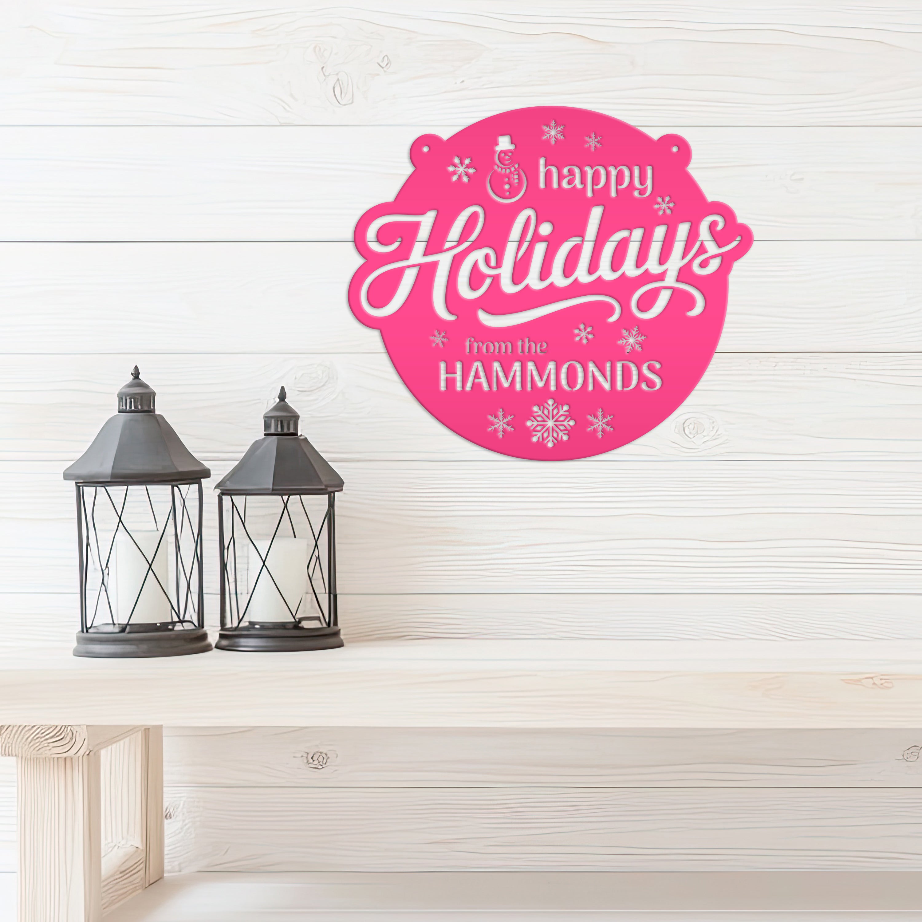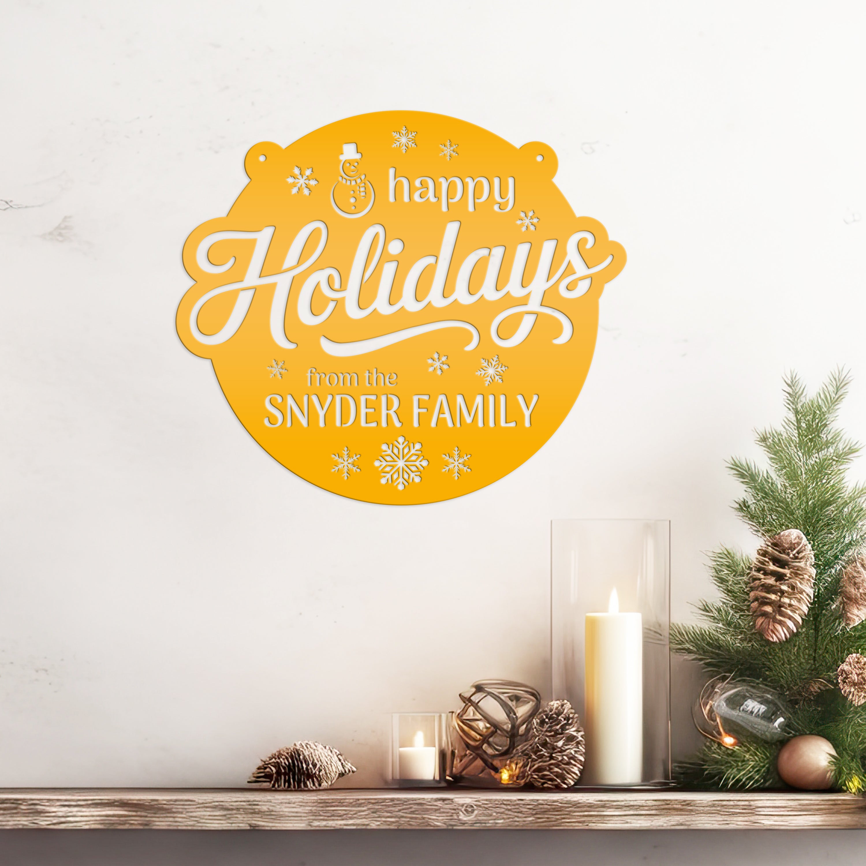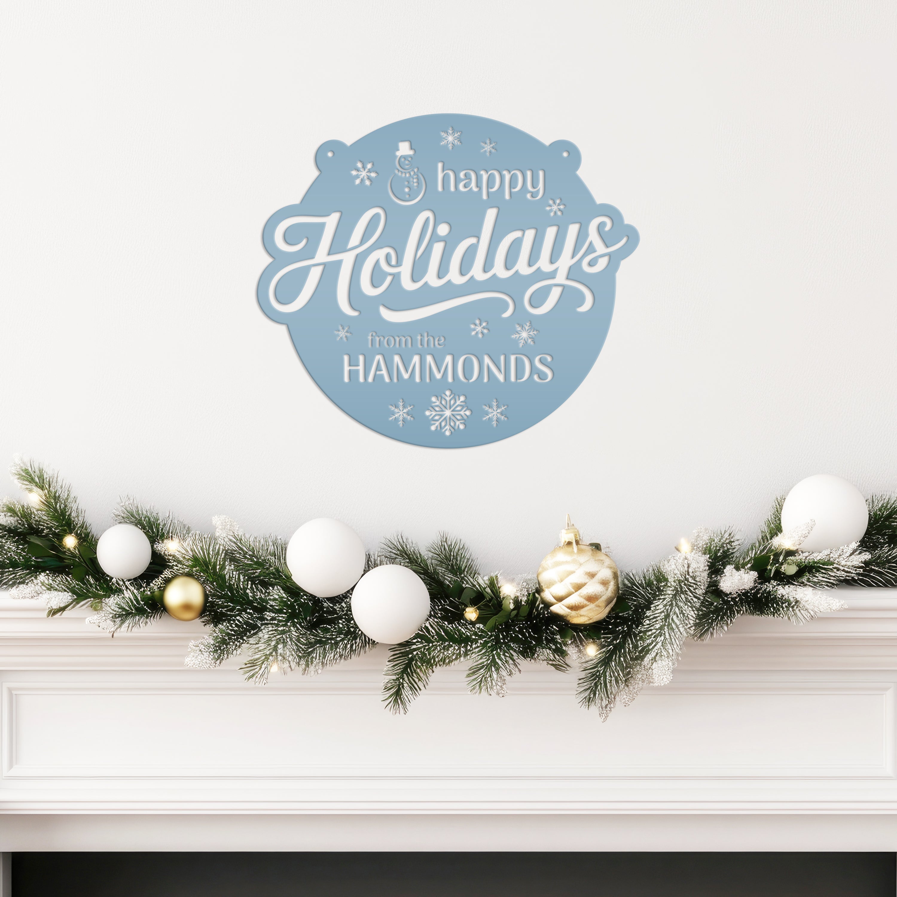 Celebrate the season in style with our Happy Holidays Metal Sign featuring a charming snowflake design! This custom metal sign adds a festive touch to your home décor, perfect for welcoming guests and spreading holiday cheer. Customize it with your family name for a unique keepsake. Ideal for indoor or outdoor display. Order yours today and make your holidays truly memorable!