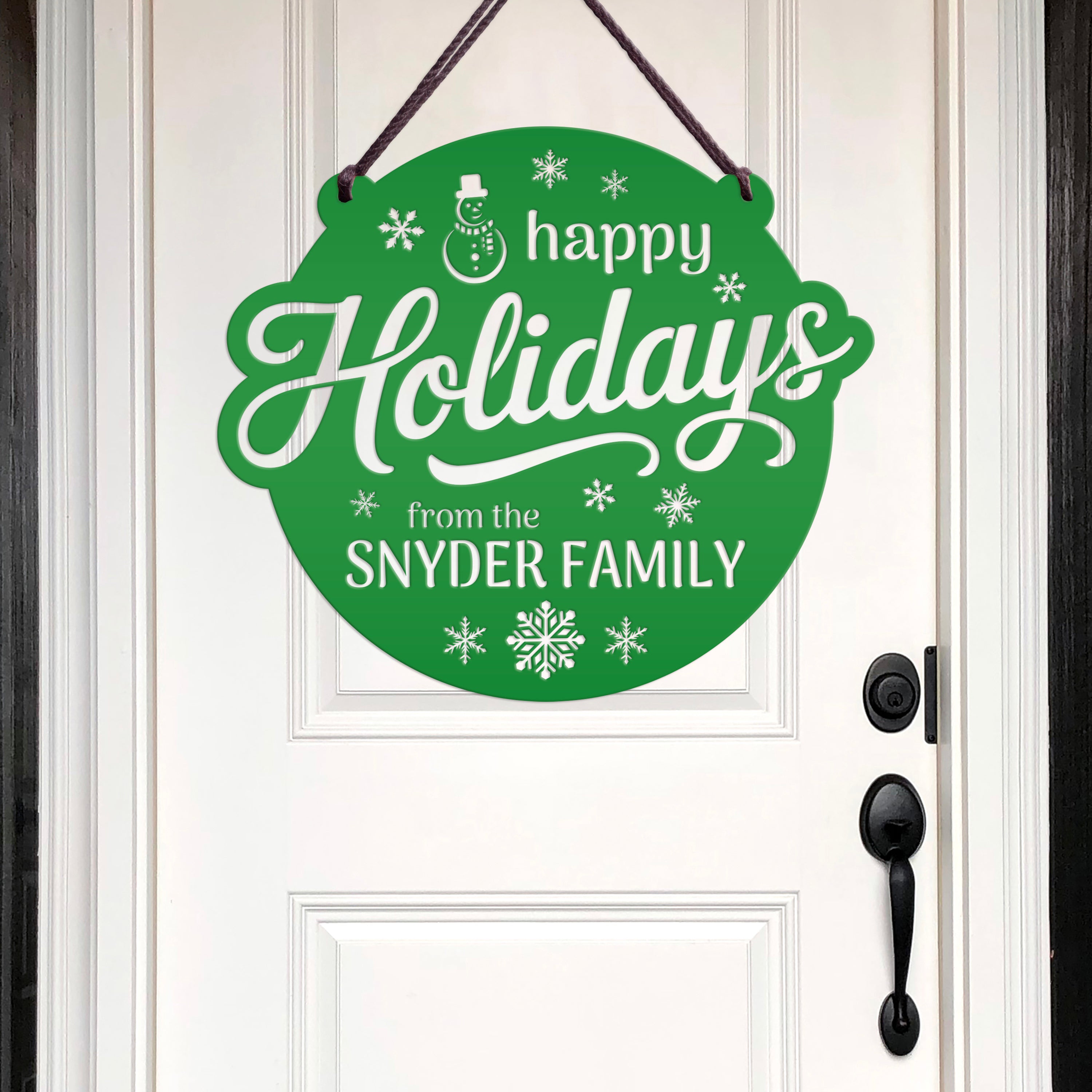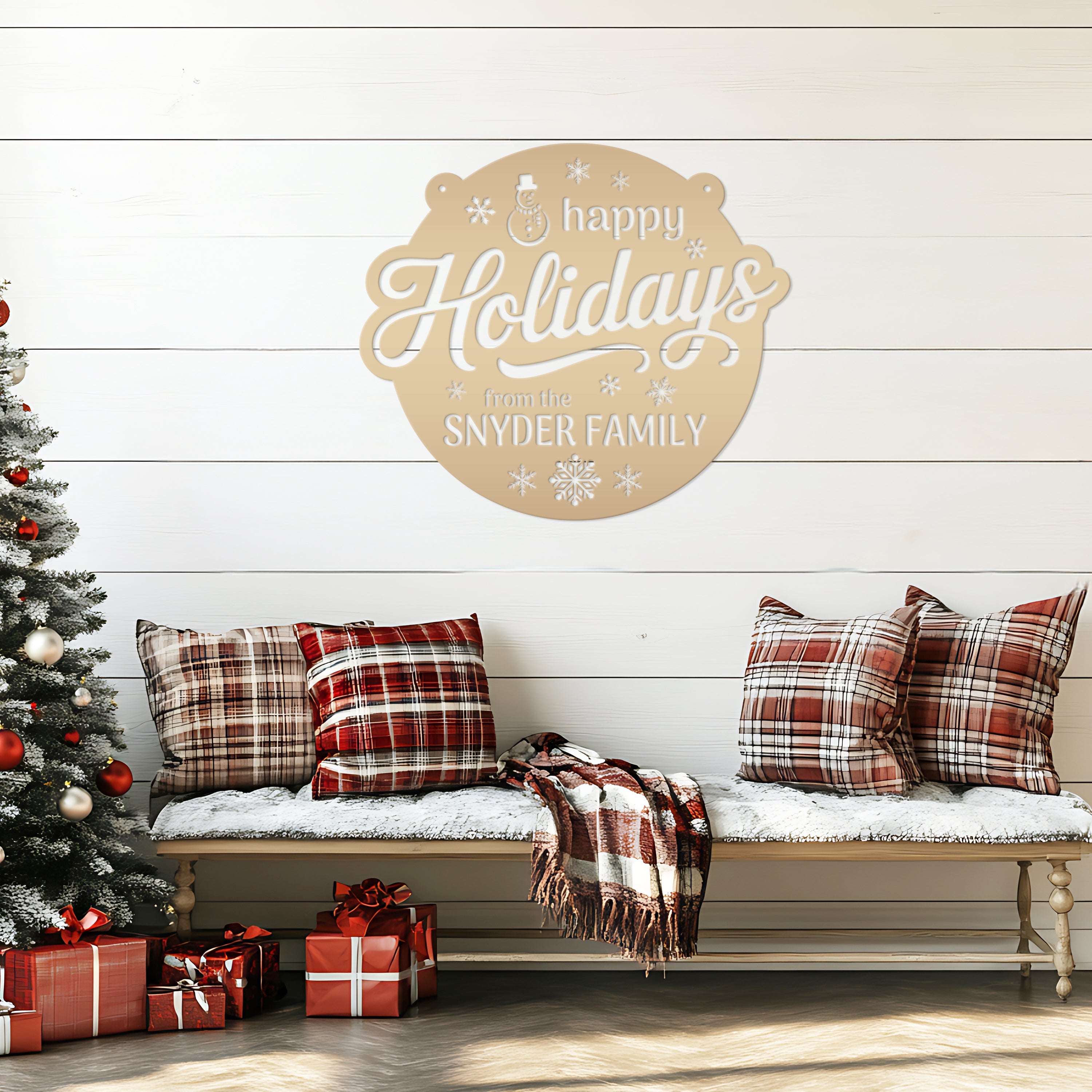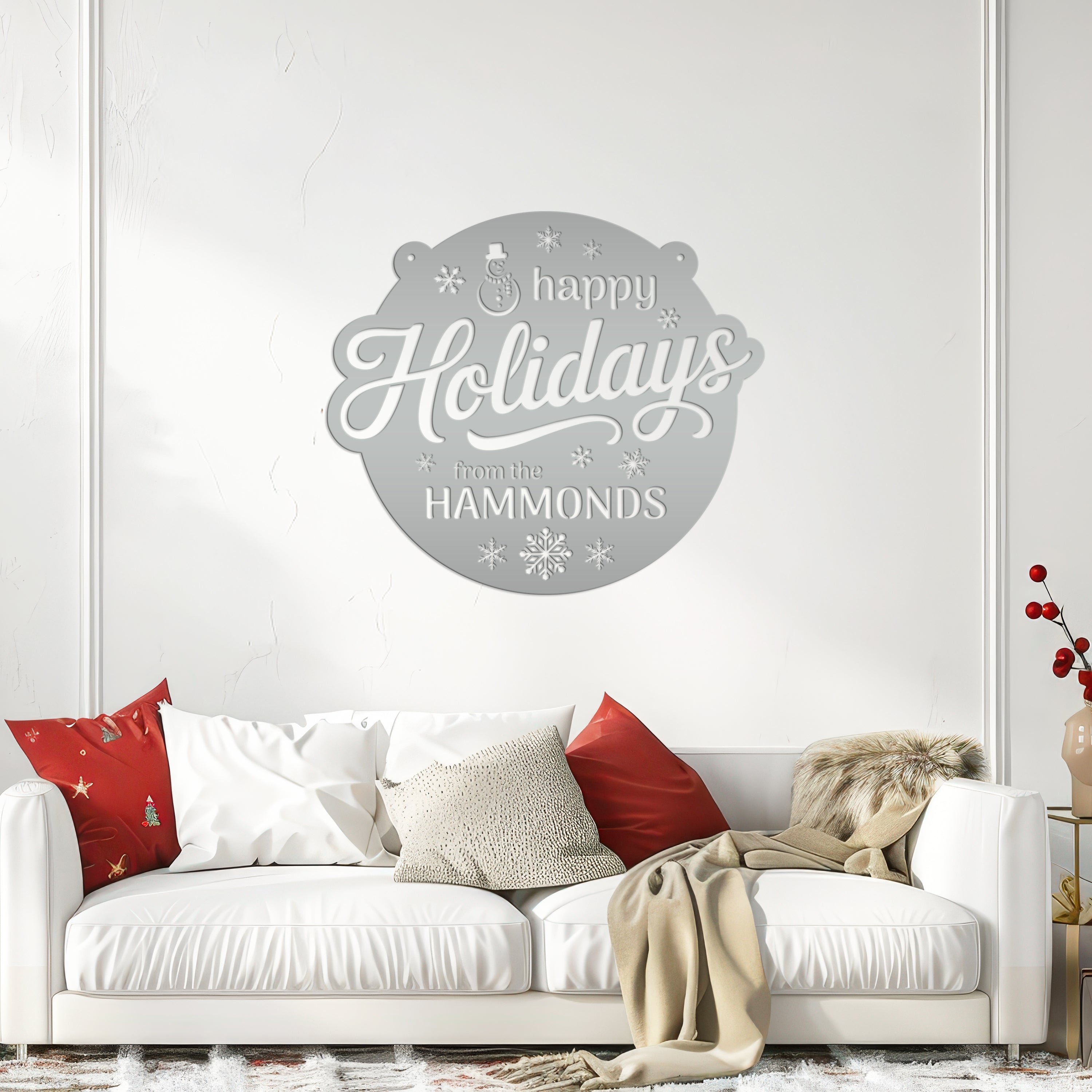 Celebrate the season in style with our Happy Holidays Metal Sign featuring a charming snowflake design! This custom metal sign adds a festive touch to your home décor, perfect for welcoming guests and spreading holiday cheer. Customize it with your family name for a unique keepsake. Ideal for indoor or outdoor display. Order yours today and make your holidays truly memorable!