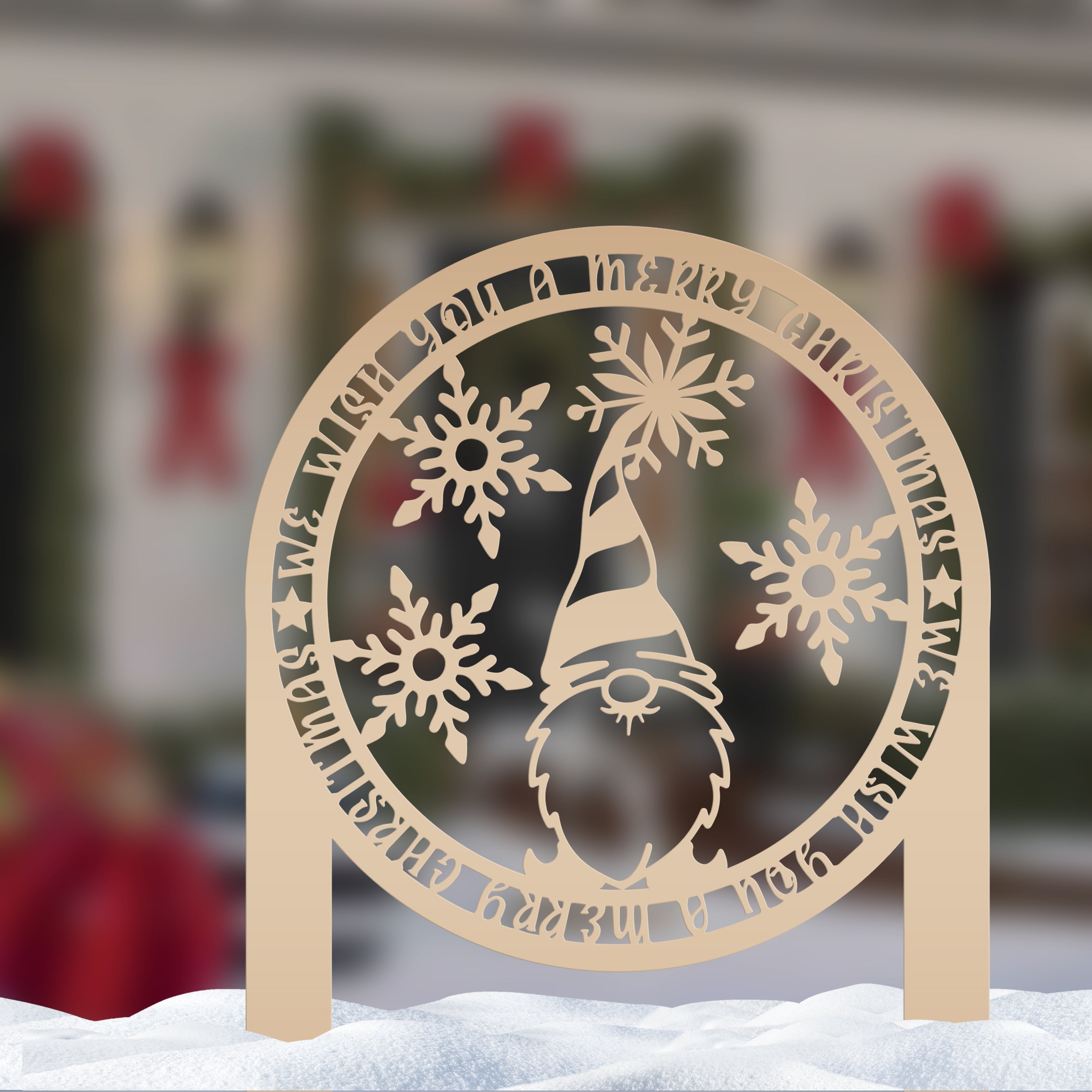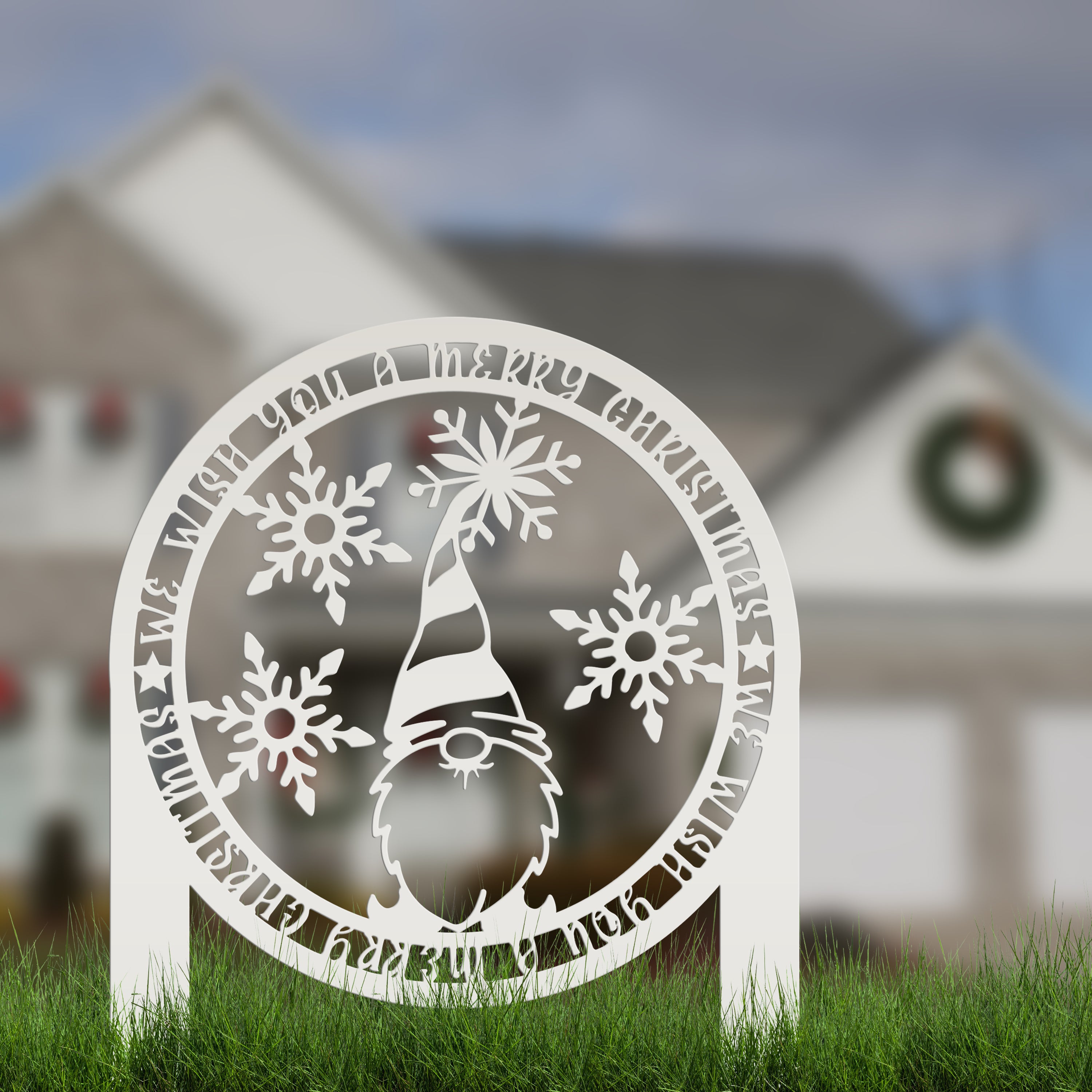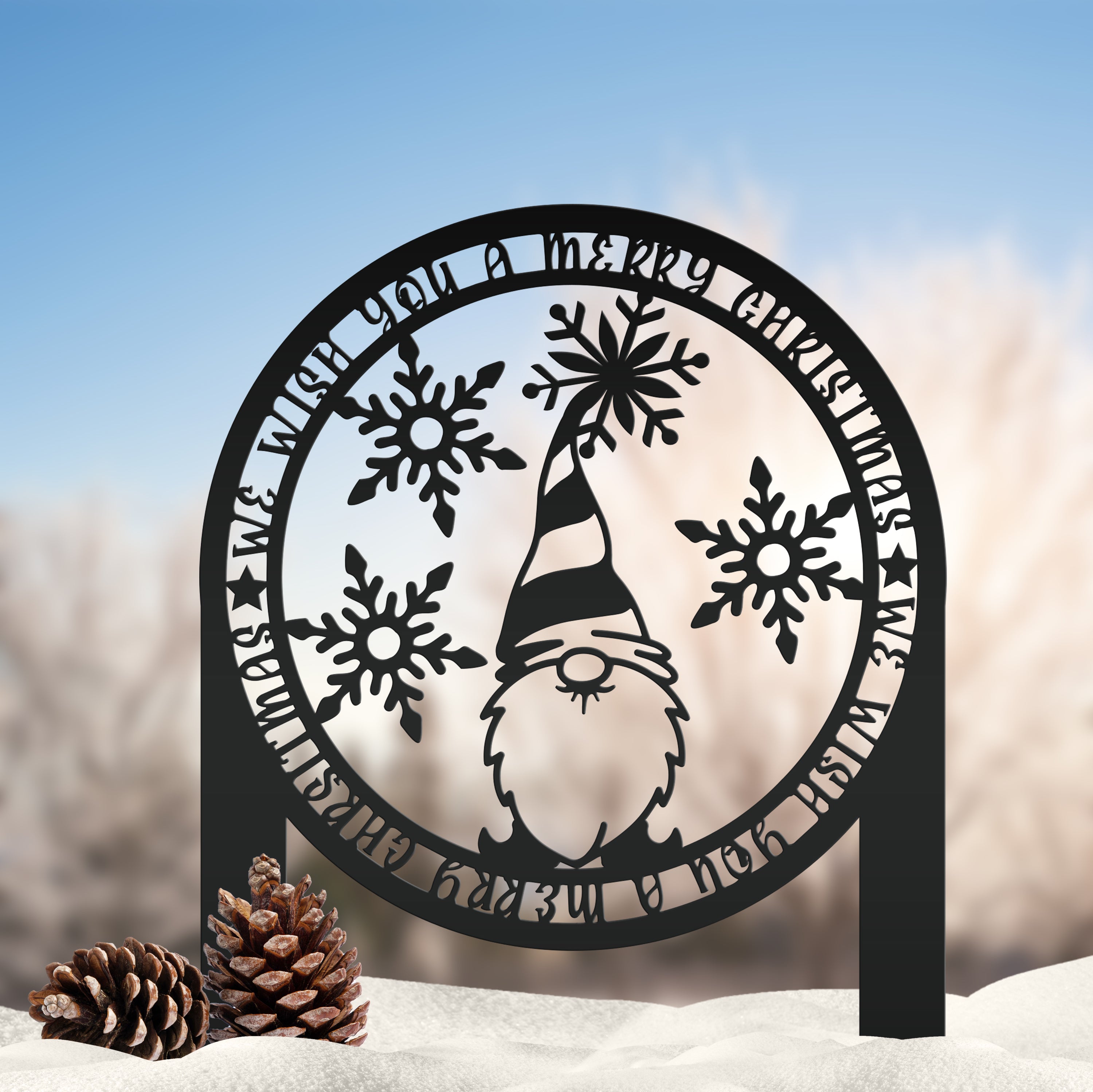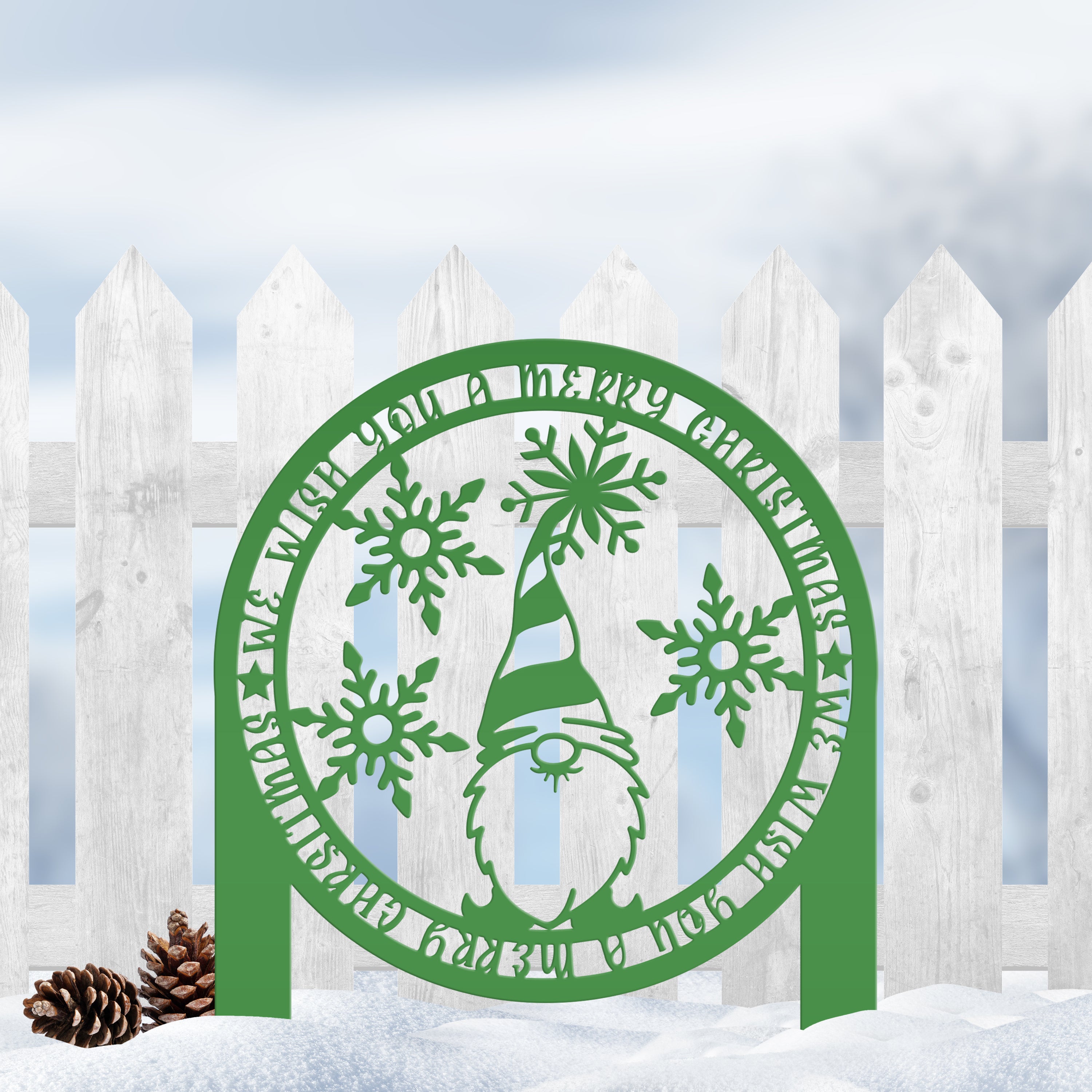 This Merry Christmas Gnome Metal Yard Stake is the perfect Christmas decor for your lawn or garden. Gnome lovers, this is the perfect Christmas Yard Stake for you! Place this Christmas Gnome Yard Decor in your front lawn or garden and bring on the holiday cheer with these mystical creatures. "We wish you a Merry Christmas"