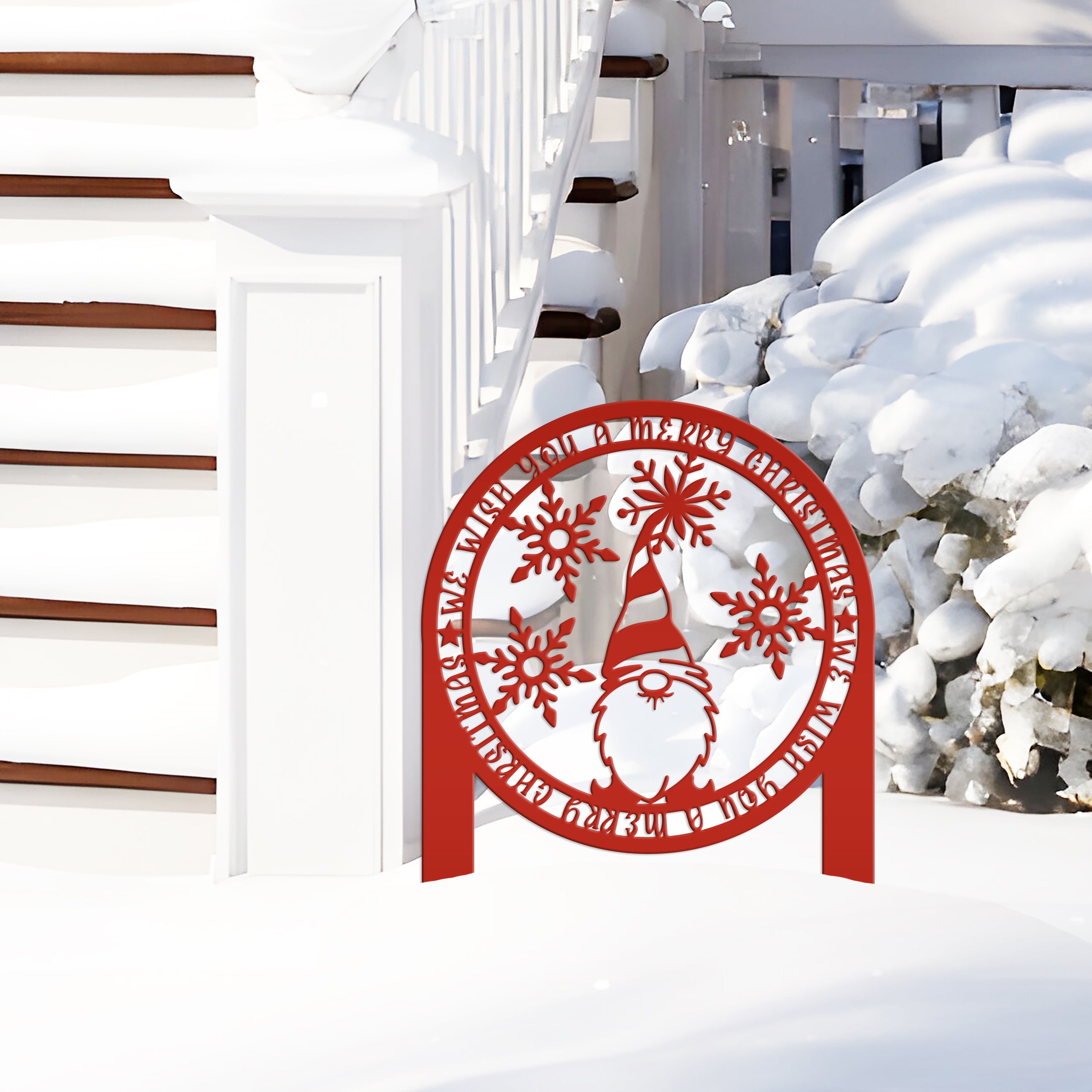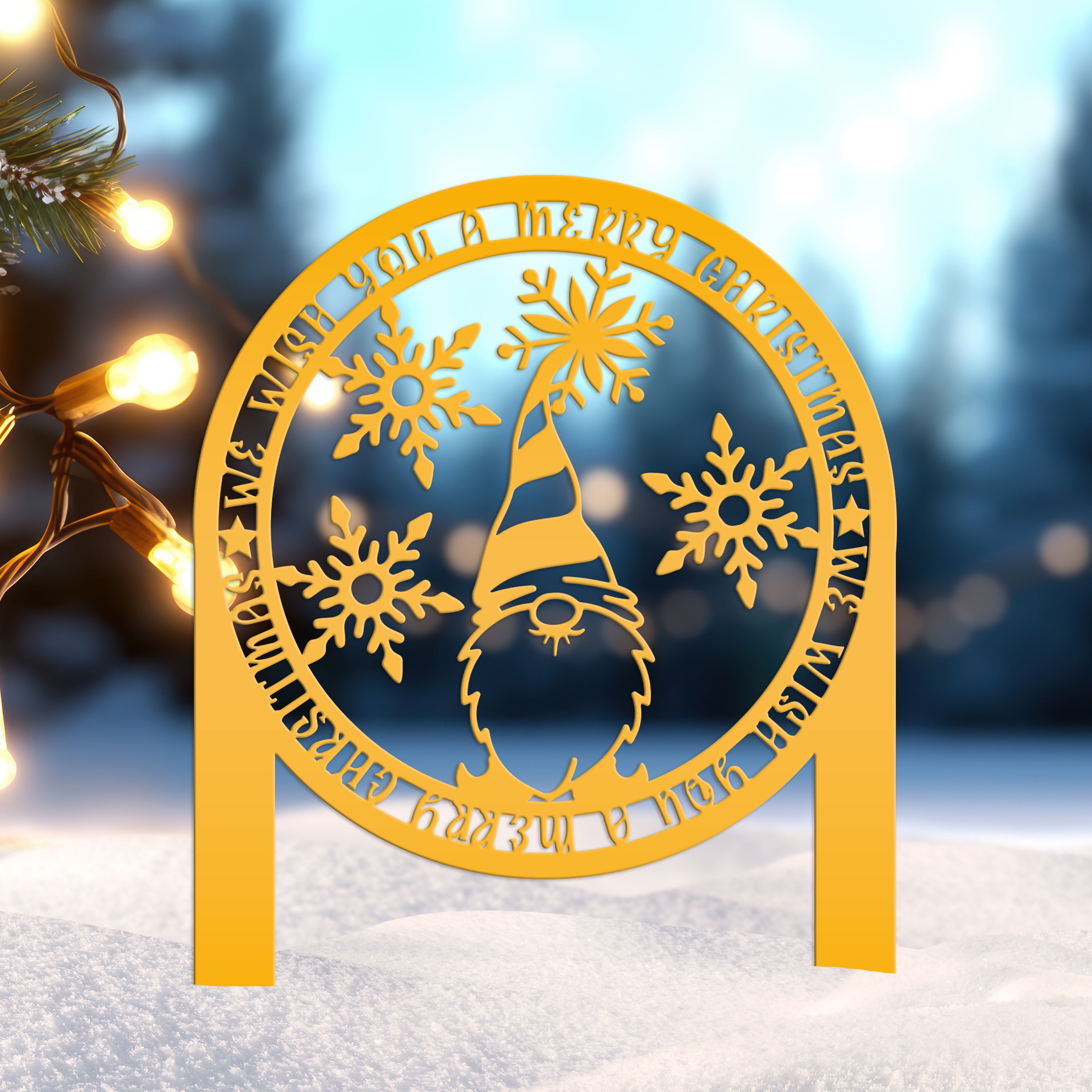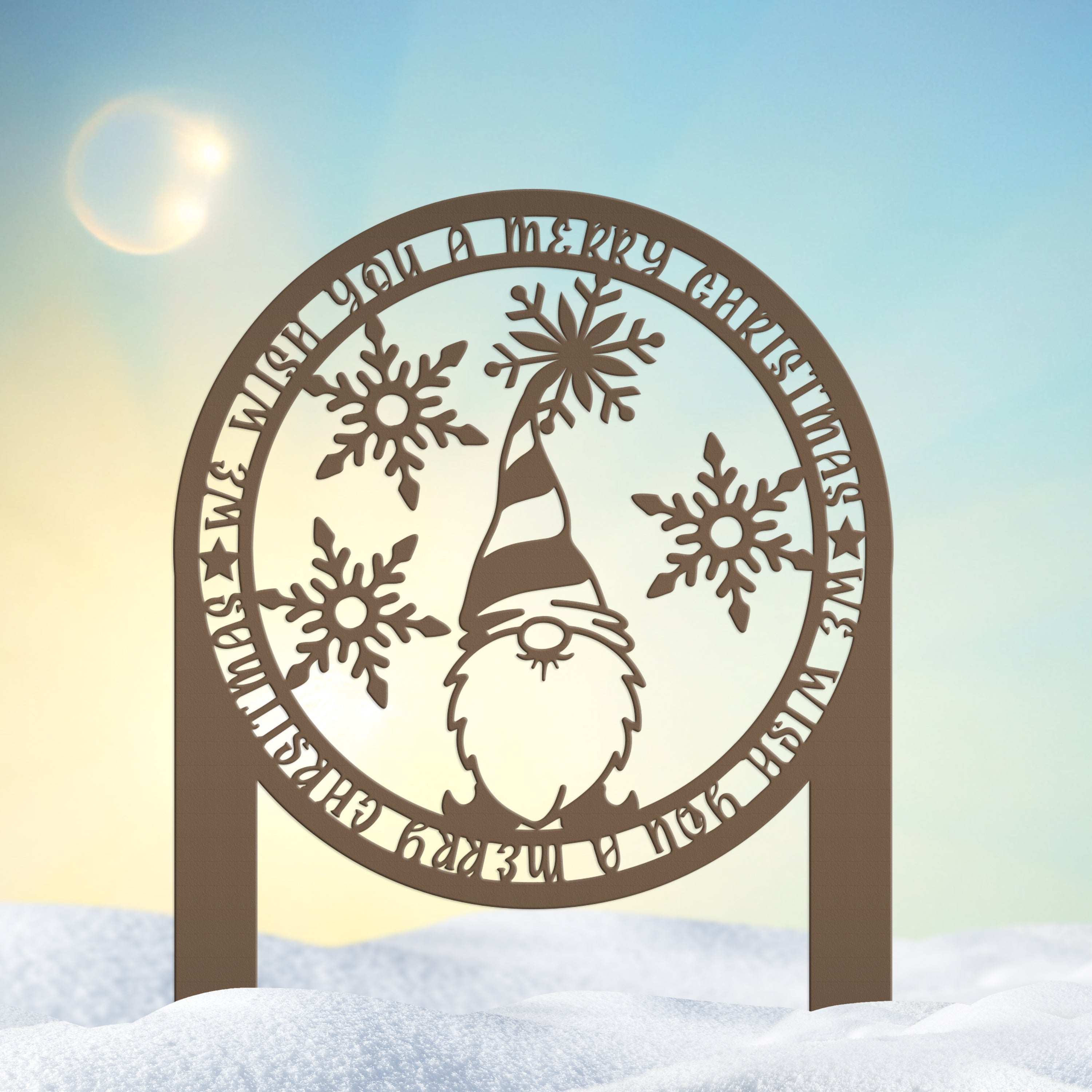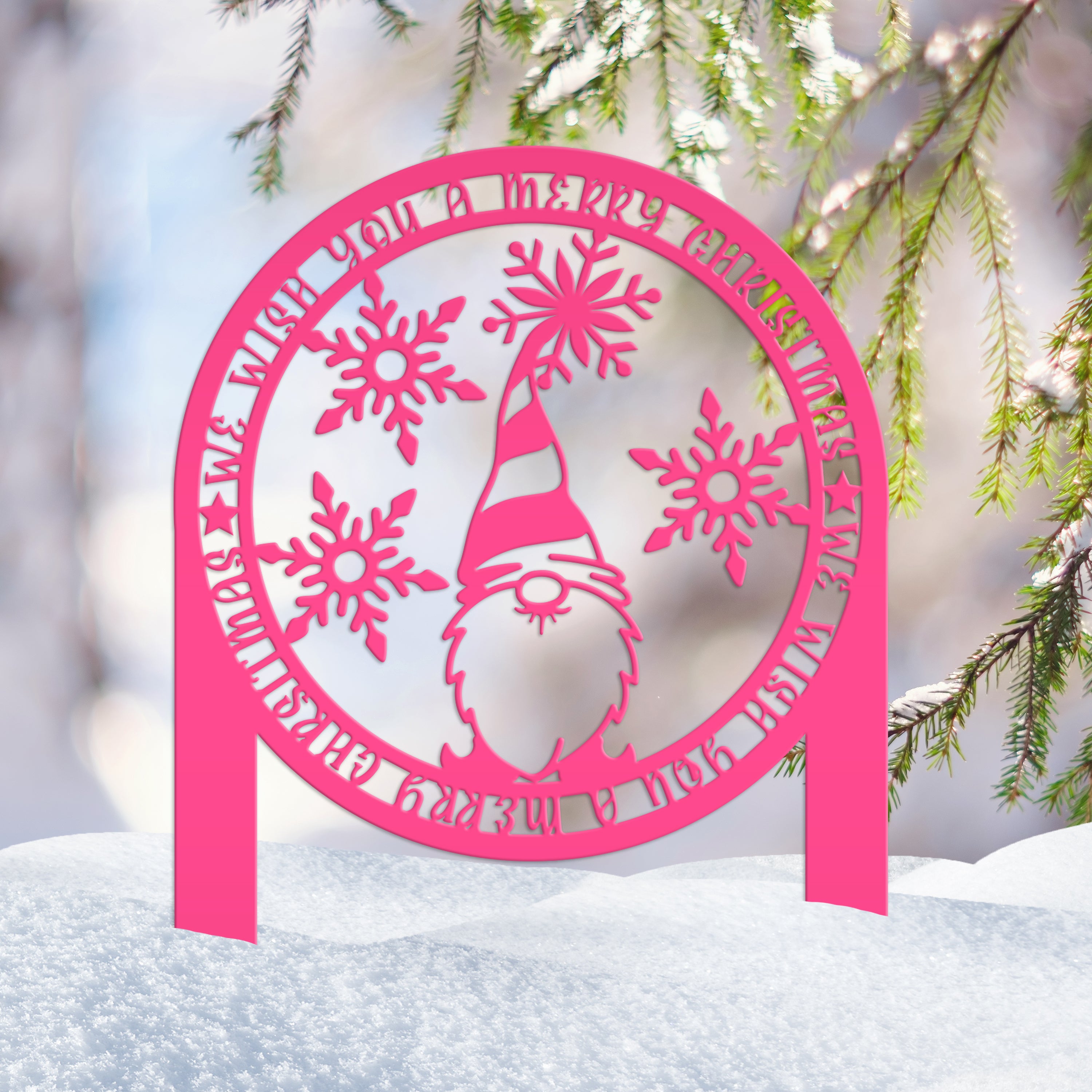 This Merry Christmas Gnome Metal Yard Stake is the perfect Christmas decor for your lawn or garden. Gnome lovers, this is the perfect Christmas Yard Stake for you! Place this Christmas Gnome Yard Decor in your front lawn or garden and bring on the holiday cheer with these mystical creatures. "We wish you a Merry Christmas"