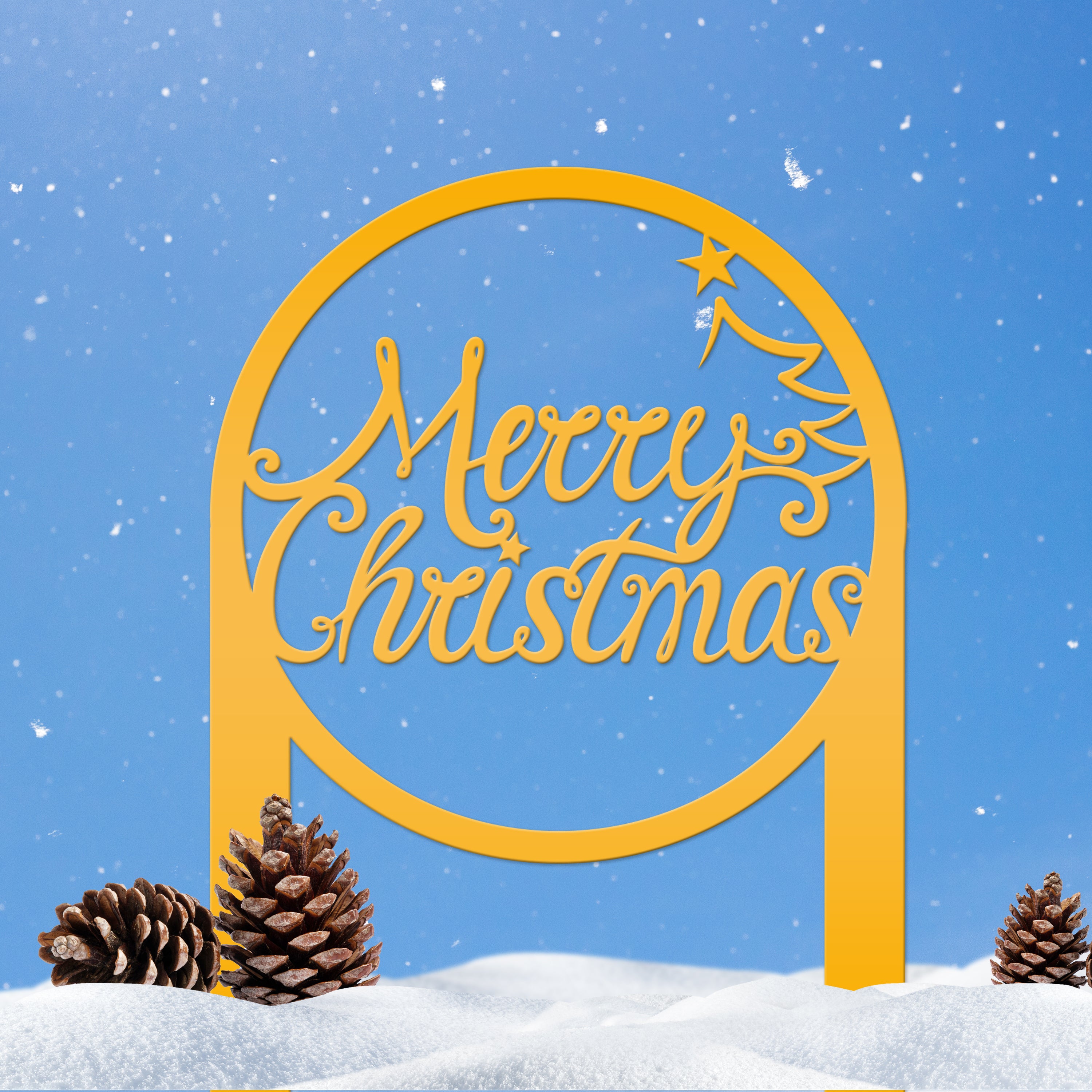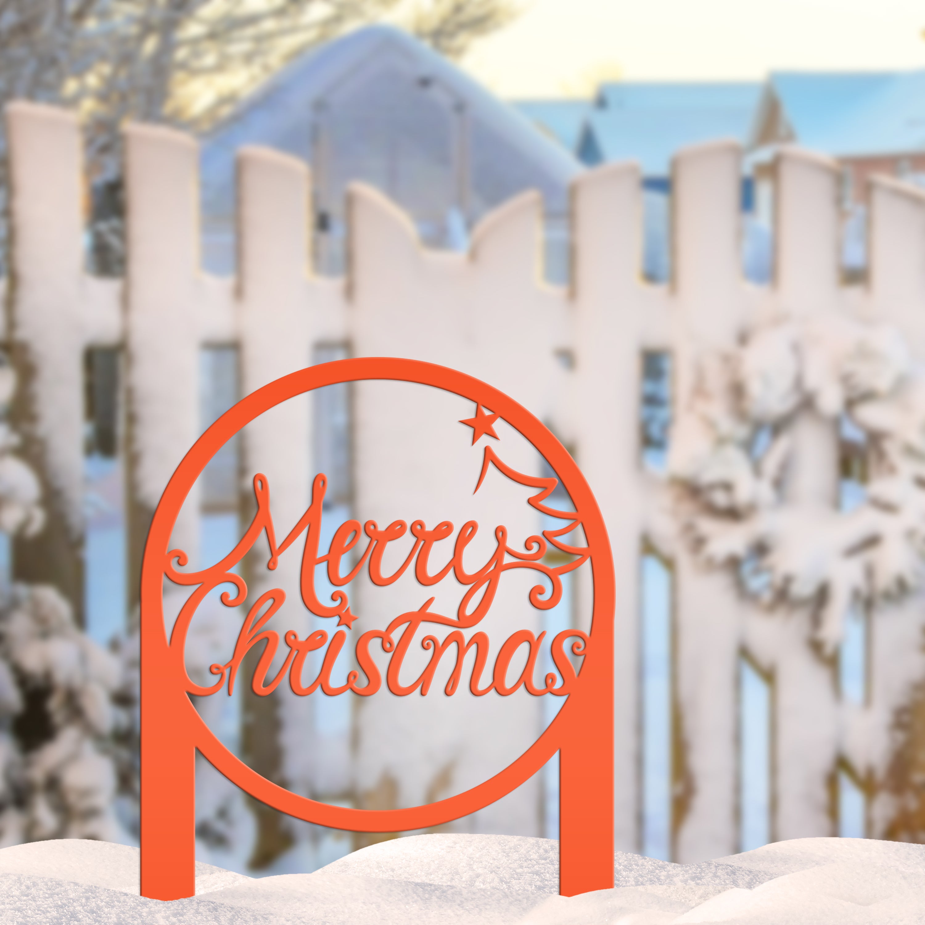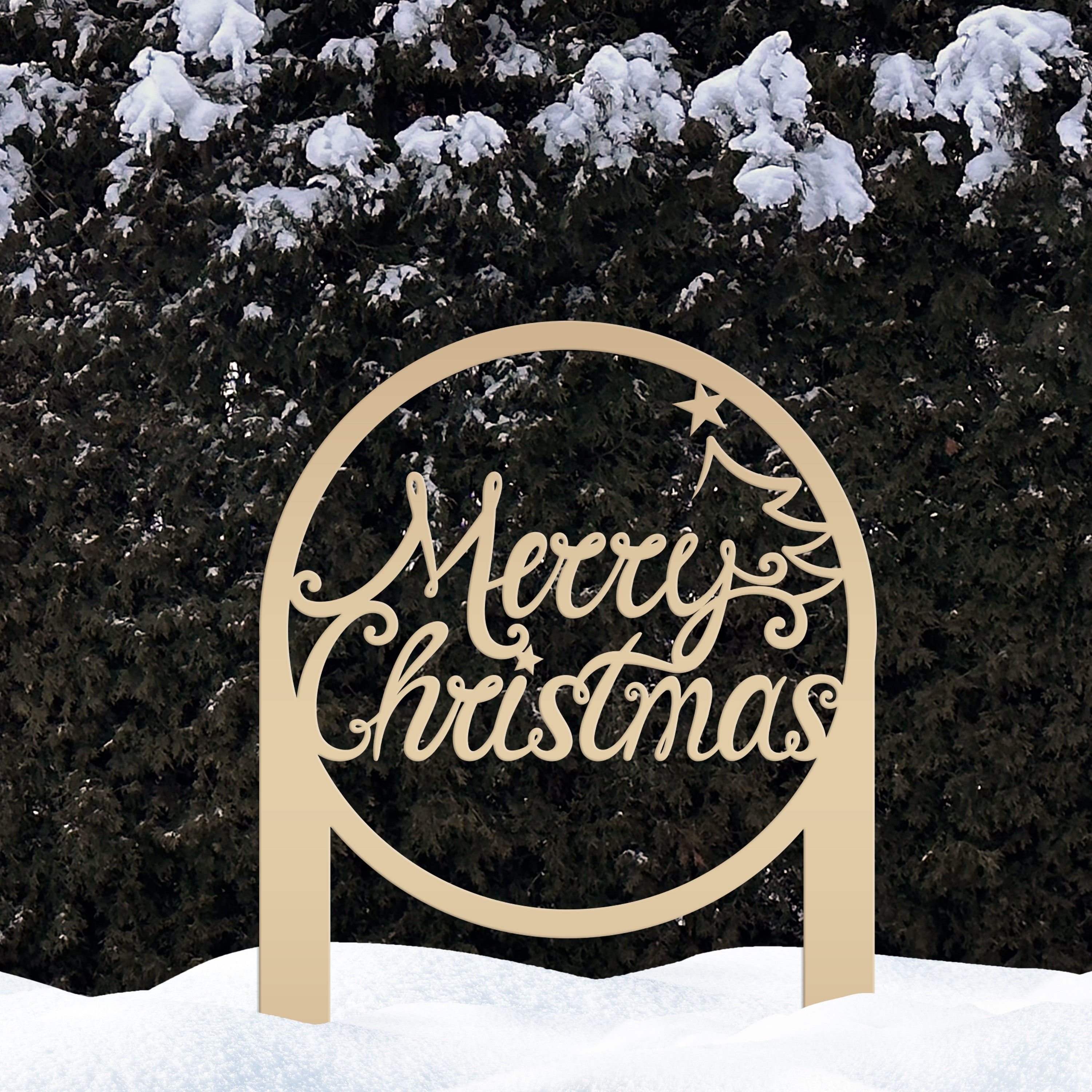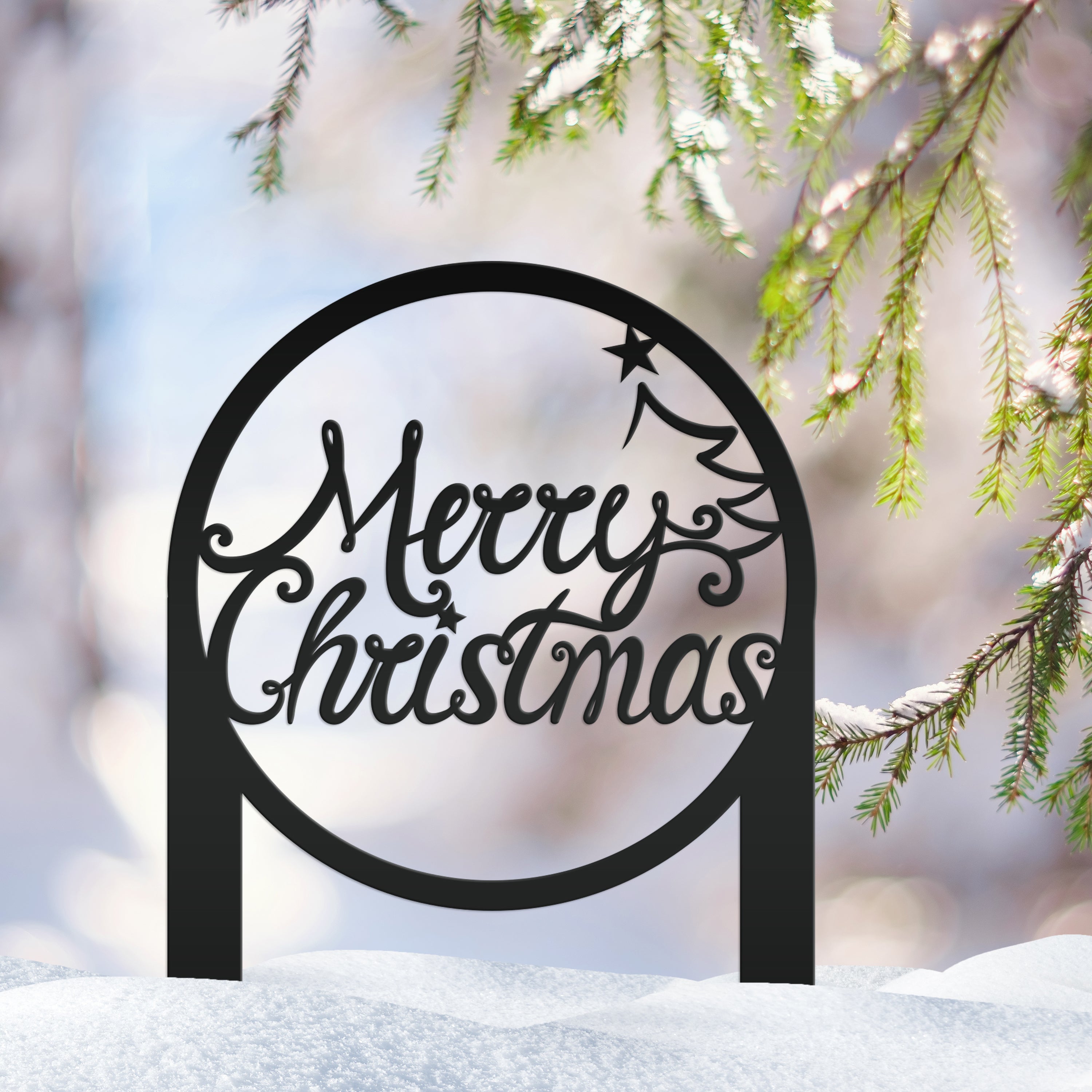 Merry Christmas Metal Yard Stake - Outdoor Christmas Decor