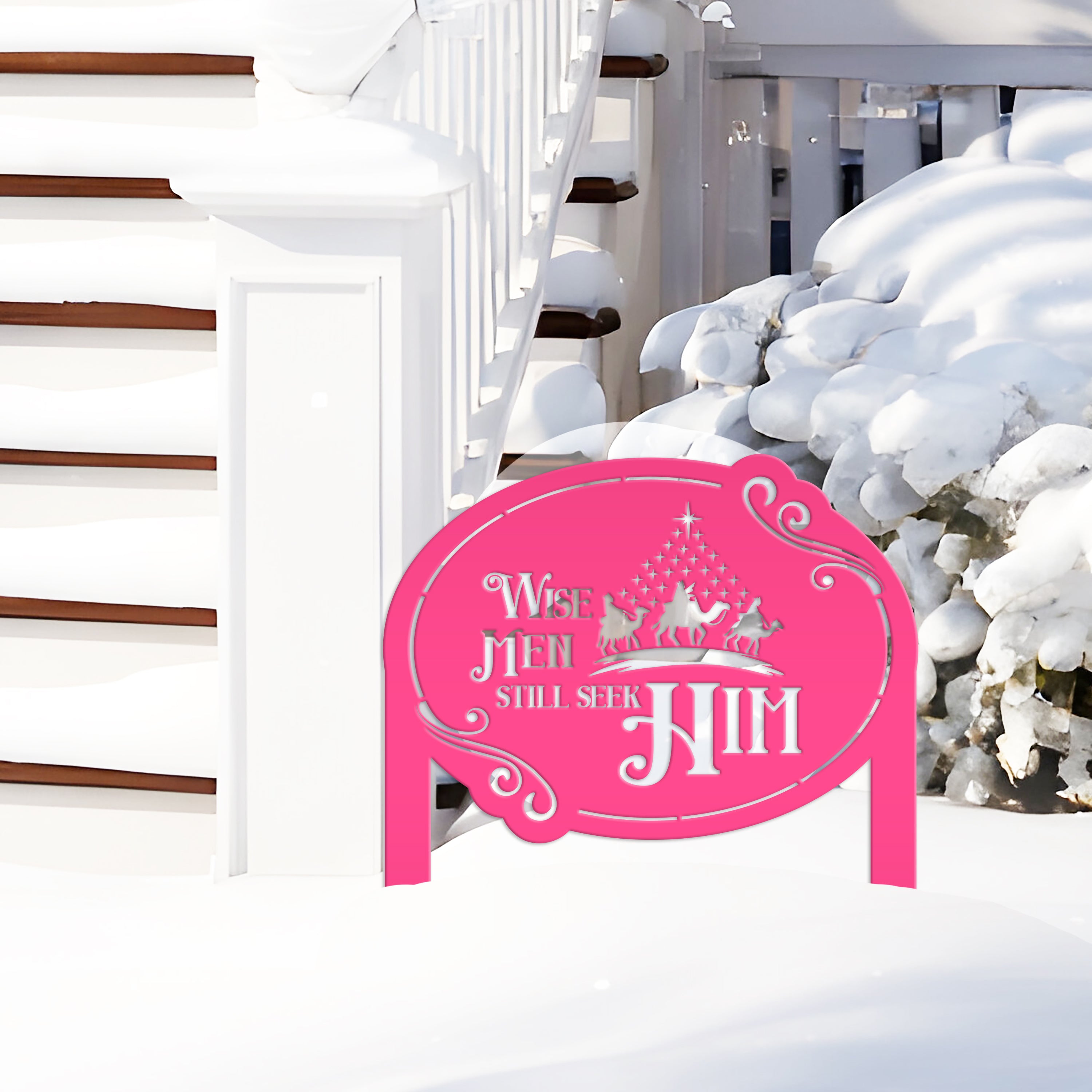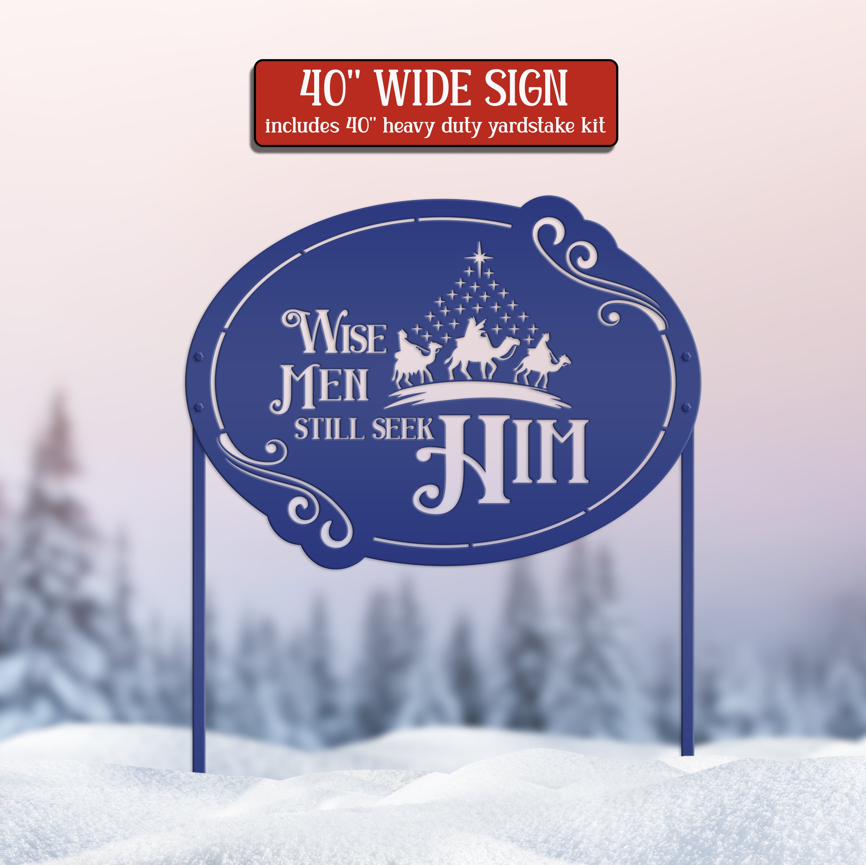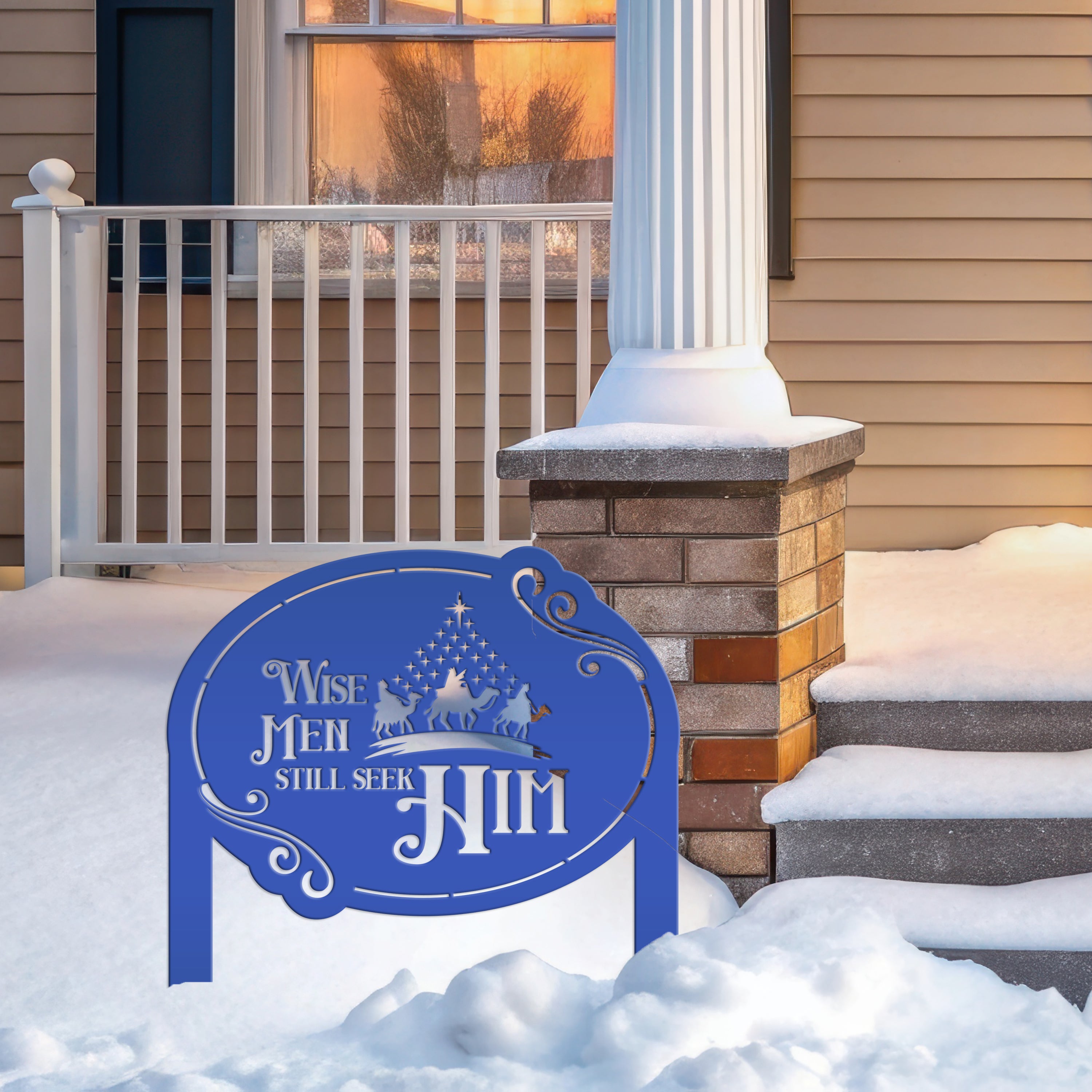 Add a touch of reverence and Christmas spirit to your outdoor space with our Outdoor Nativity Scene Yard Stake. Crafted from durable metal, this Christian lawn art beautifully depicts the birth of Jesus, making it a meaningful addition to your holiday decor. The intricately designed Wise Men Still Seek Him sign adds a festive touch, while the shadow caster feature adds depth and dimension. Spread the message of joy and hope this Christmas season!