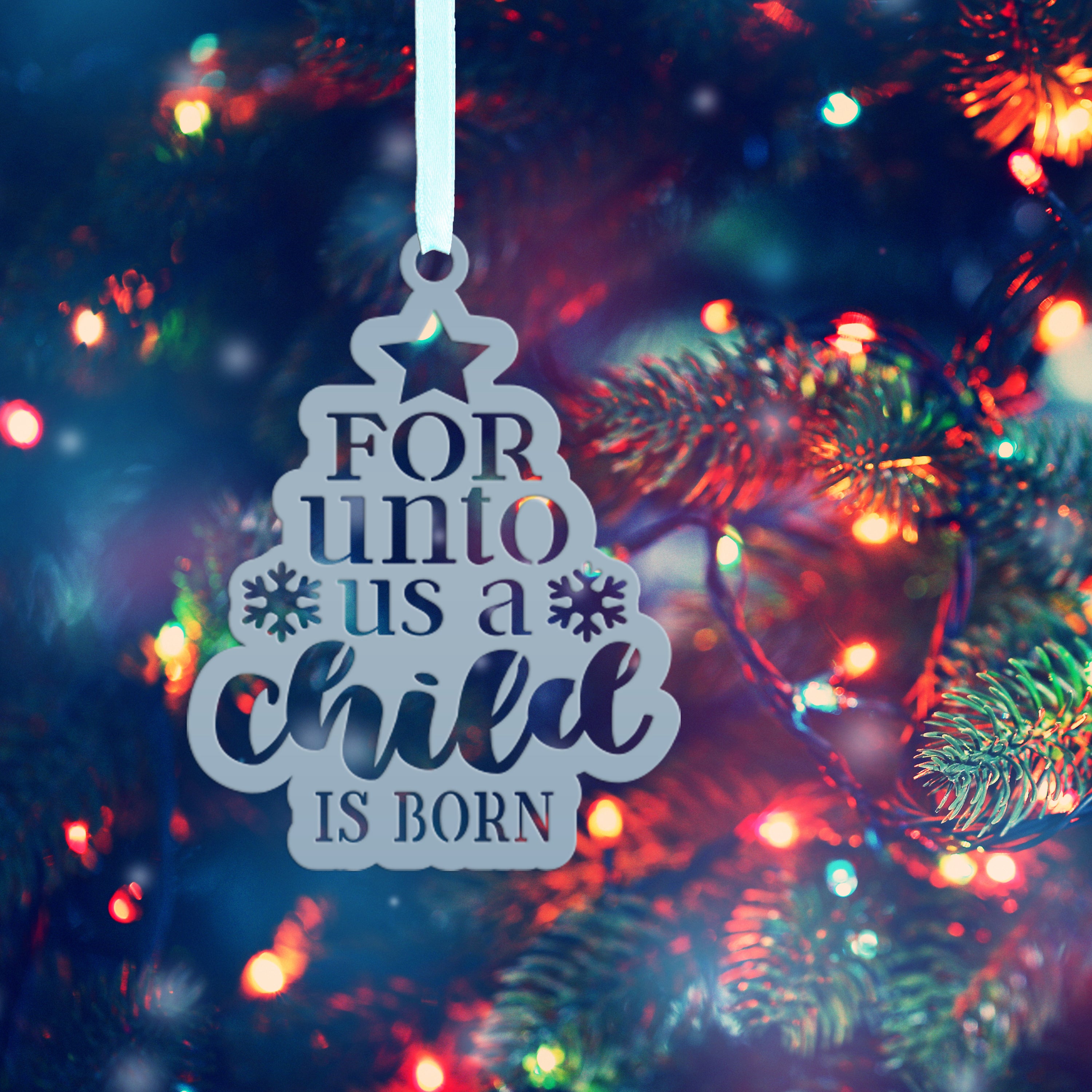 Celebrate the joyous season with our For unto Us a Child is Born Metal Ornament, a perfect addition to your Christmas decor or as a meaningful gift to loved ones. Crafted with precision and care, this ornament is more than just a decoration; it is a festive keepsake meant to cherish the spirit of the holidays.