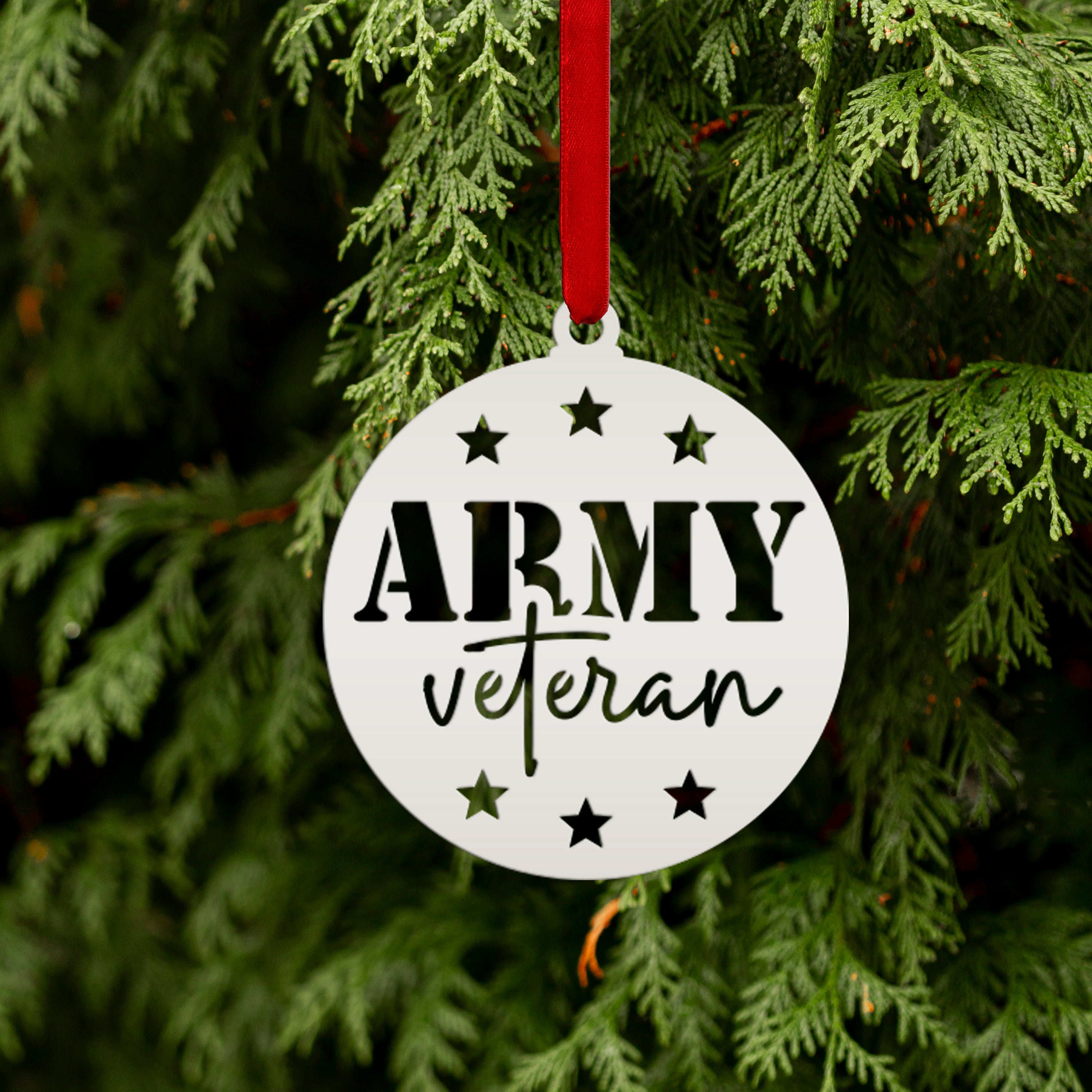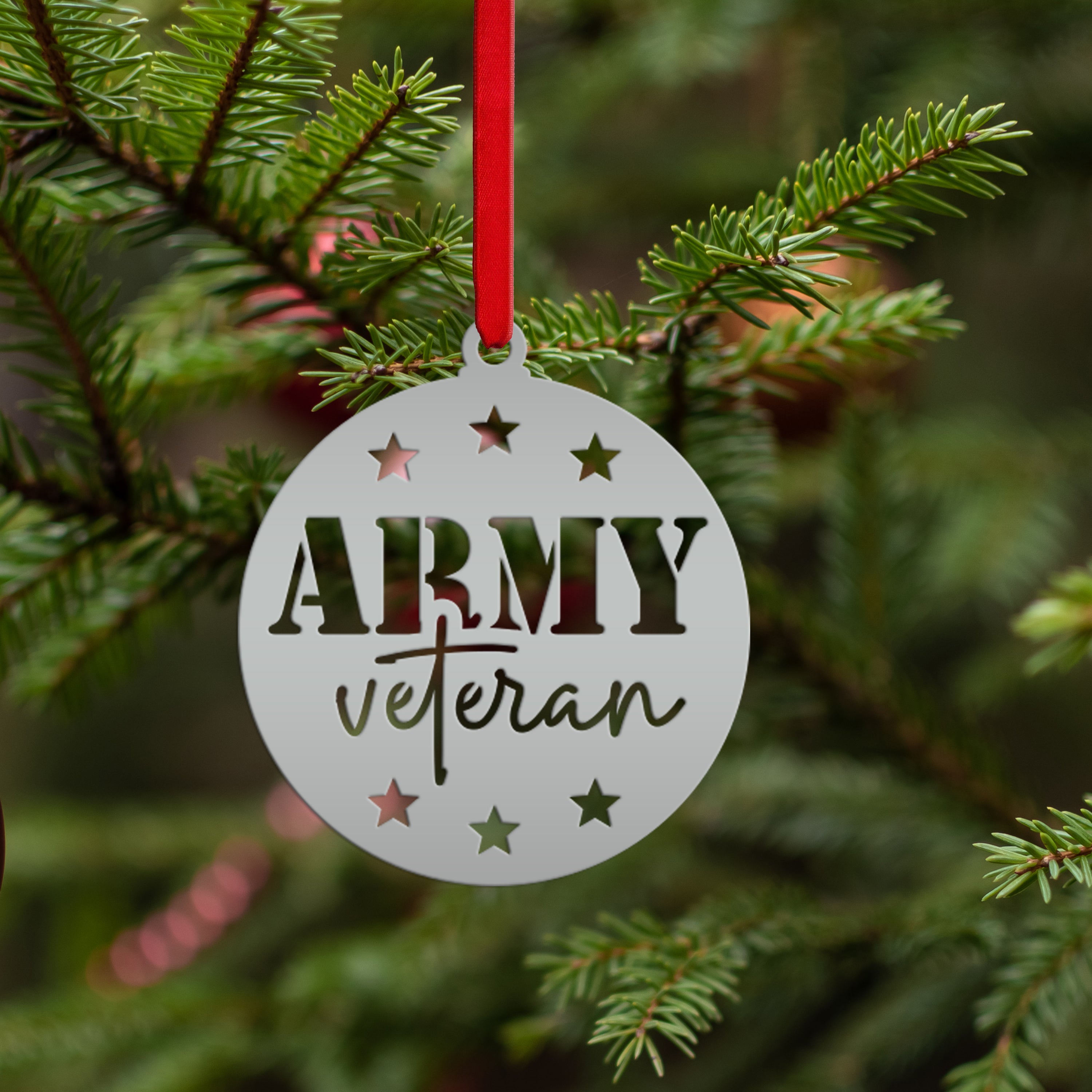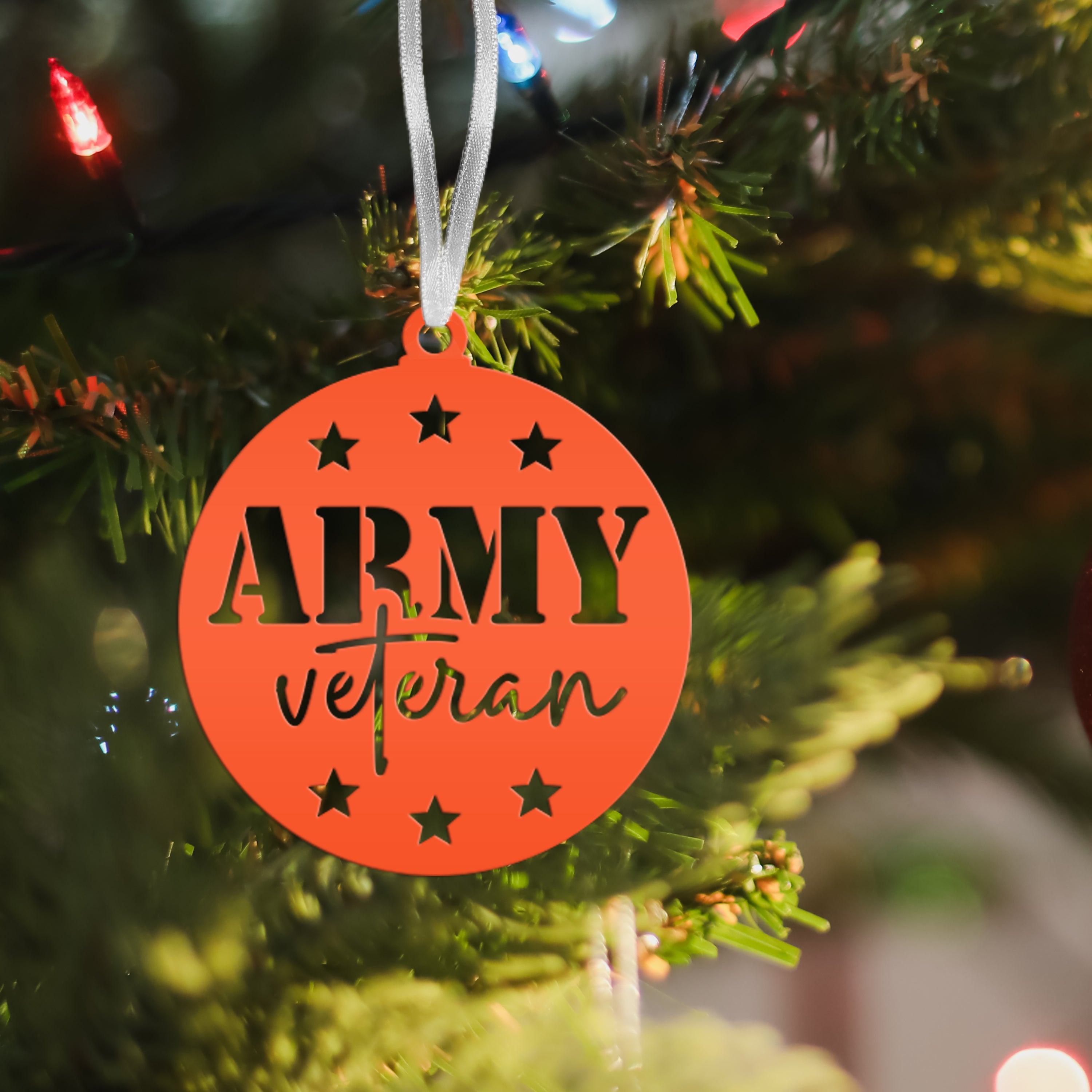 This ornament measures 4" tall and does NOT include a ribbon or cord for hanging.
