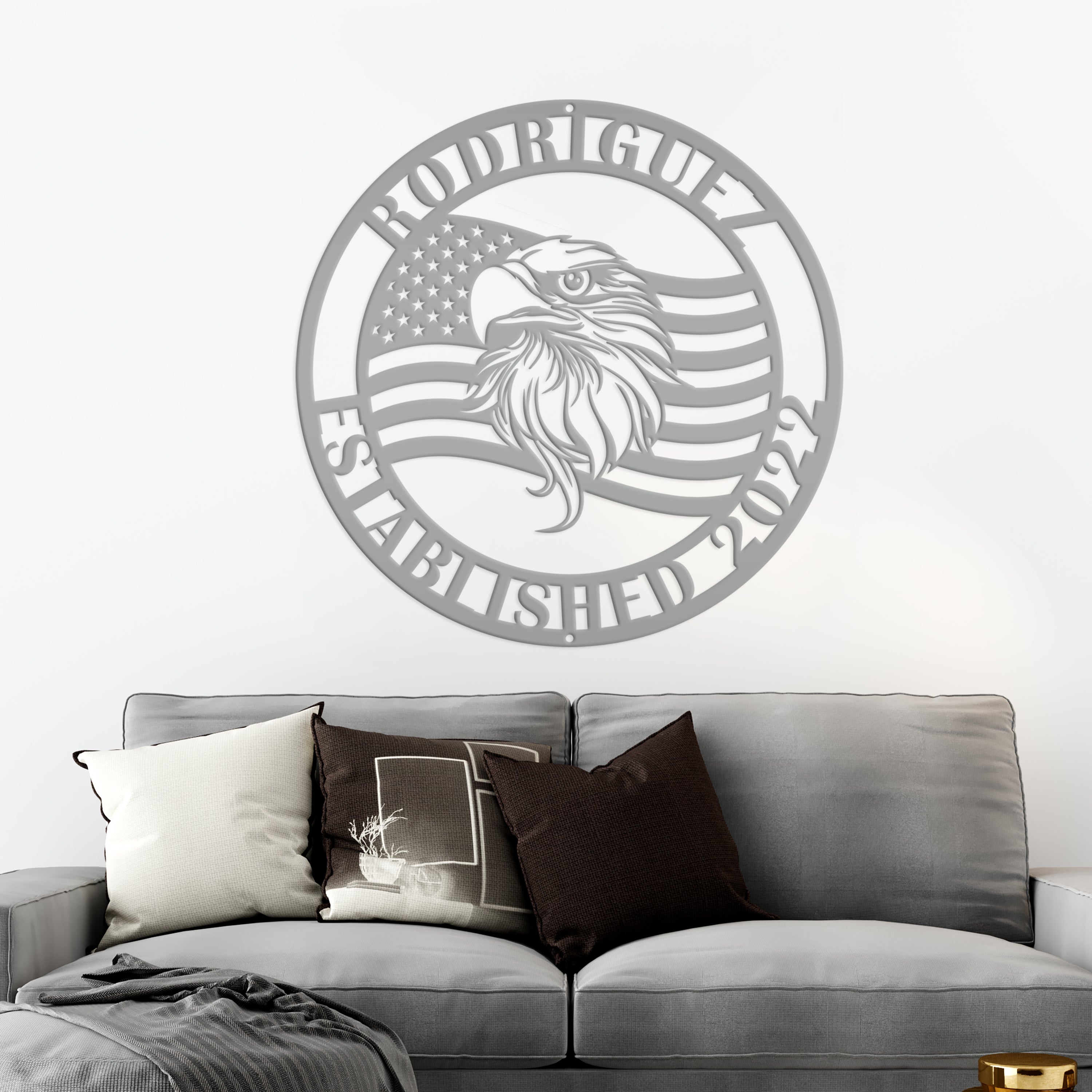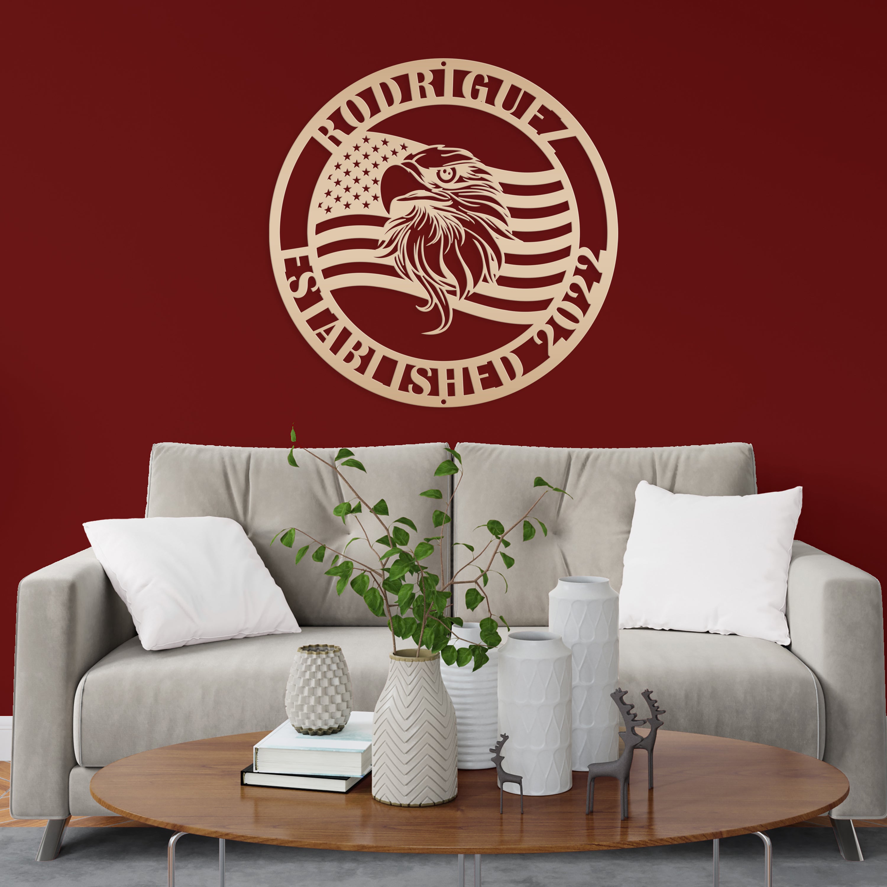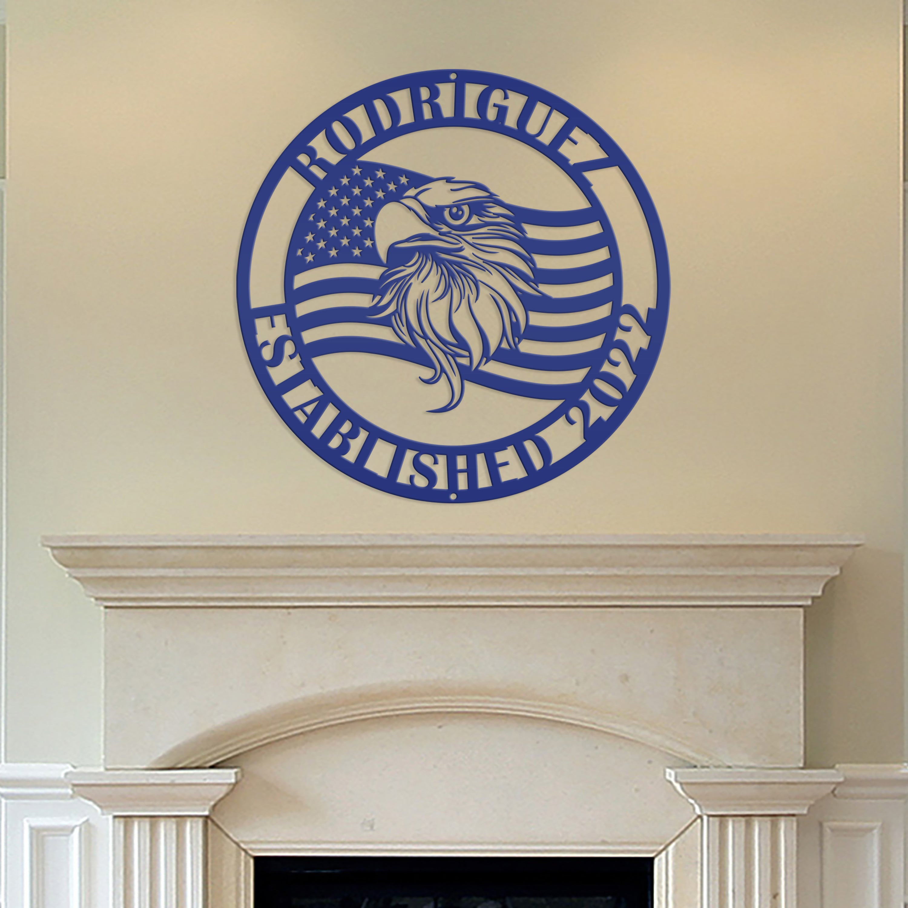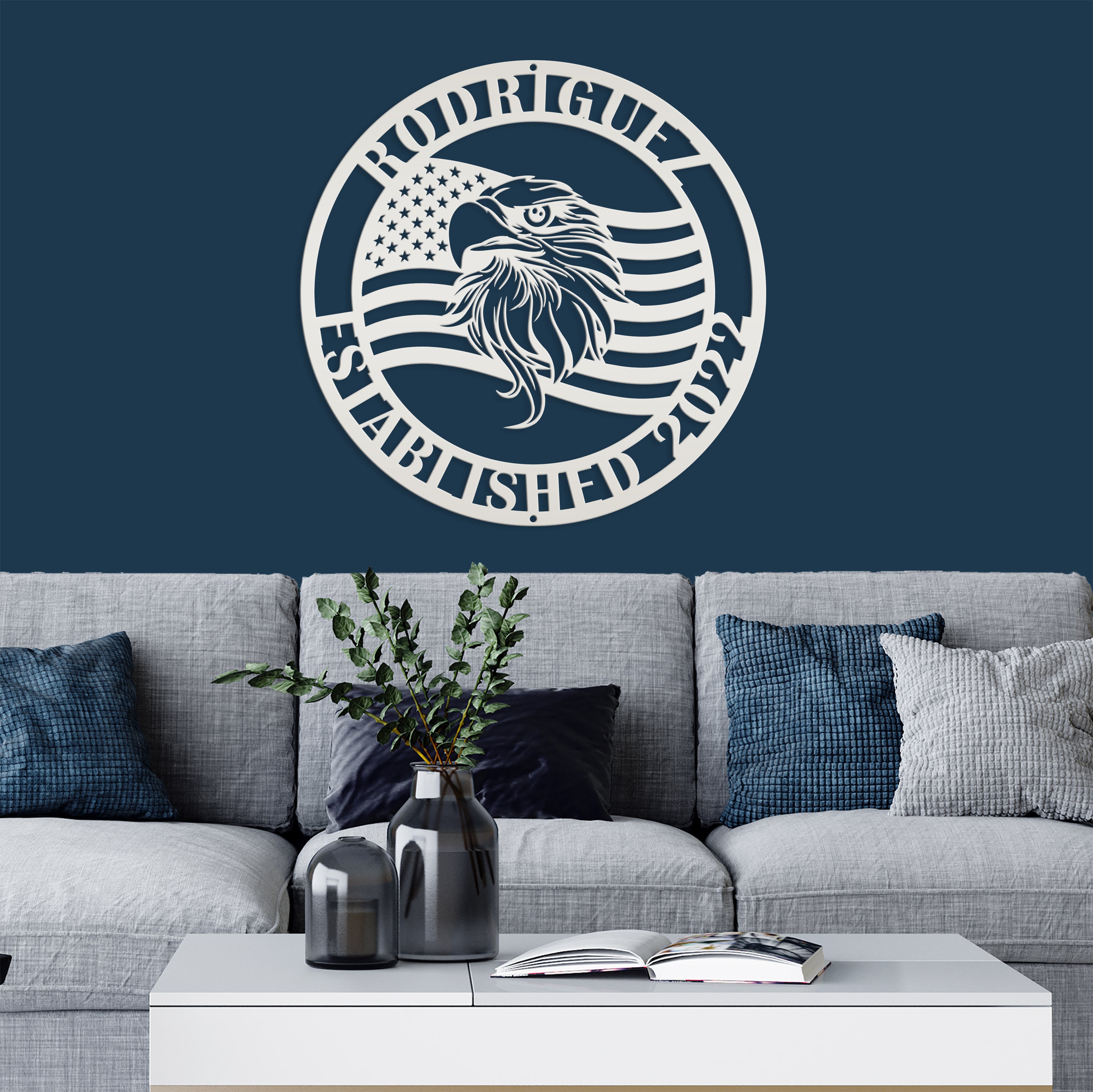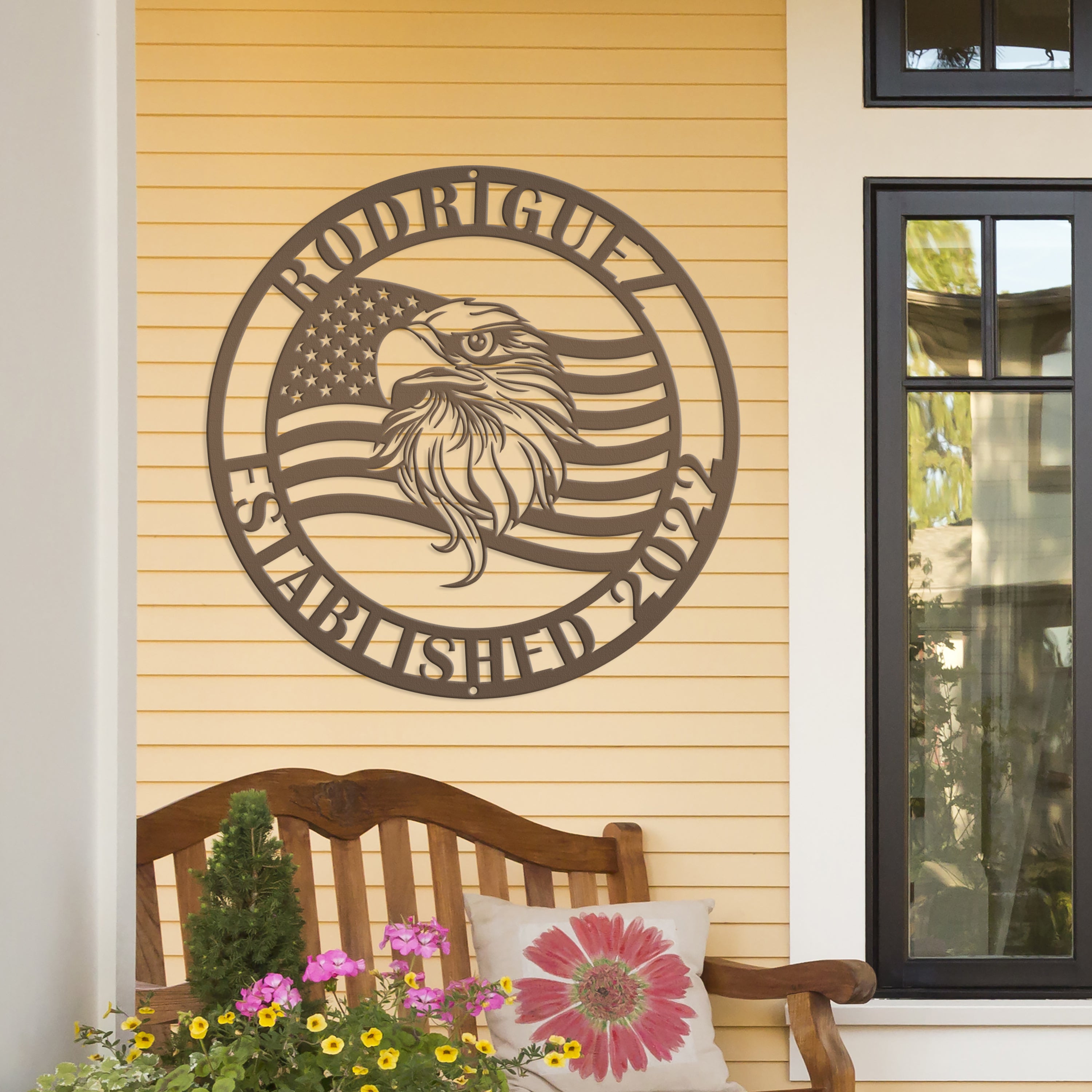 Make a statement of patriotism with our Custom Metal Eagle and Flag Sign. This unique door hanger features a majestic eagle soaring above the iconic American flag, creating a powerful symbol of national pride.