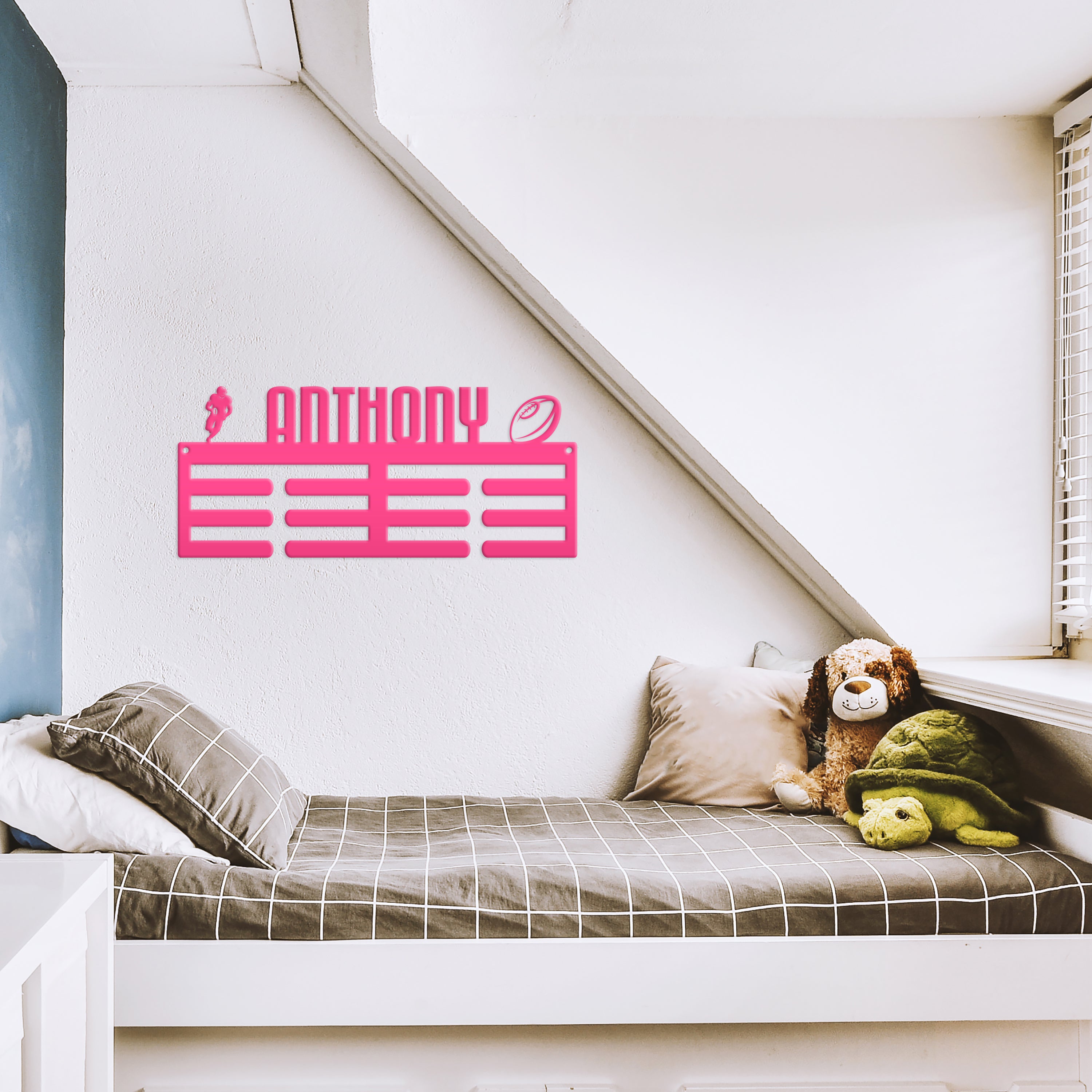 Personalized Football Medal Holder - Senior Gift-Metal Holder for Medals-Kids Bedroom Decor-Medal Holder-Ribbons-Pesonalized Medal Display for Bedroom-Custom Medal Holder for Awards-Medal Hanger-Sports Bedroom Decor
