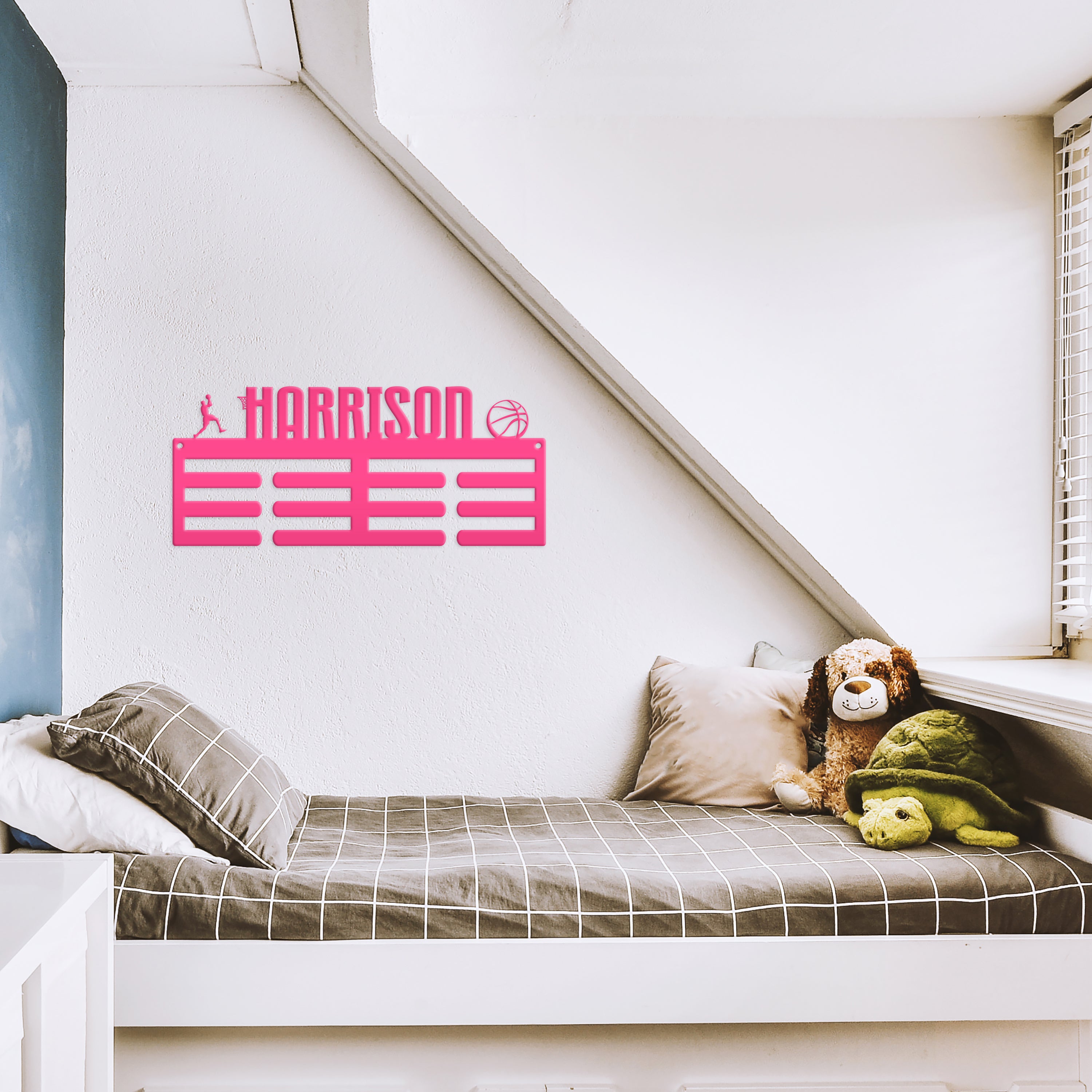 Display your basketball achievements with pride using our custom medal hanger. Personalize this metal wall rack for your sports collectibles and memorabilia.