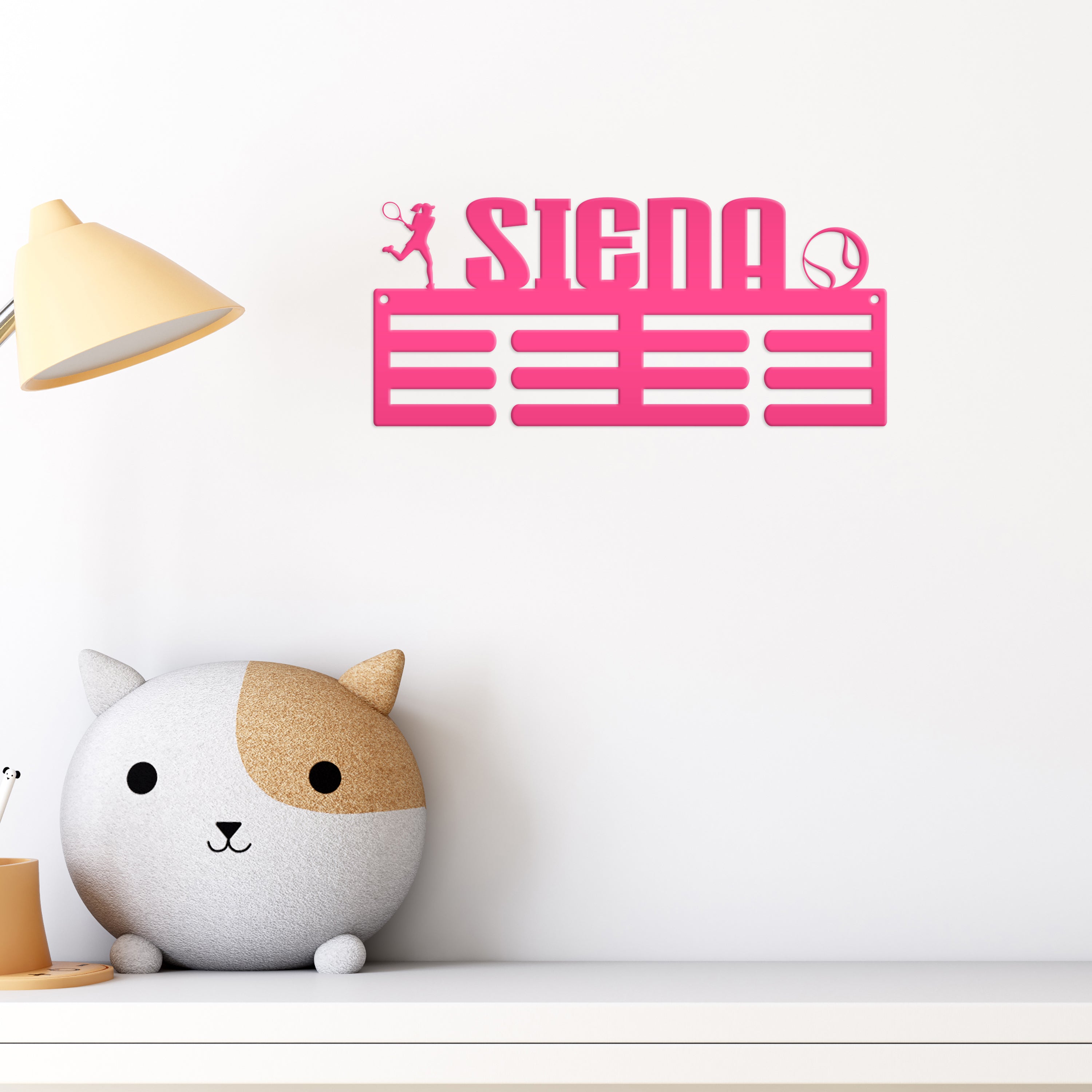 Show your love and achievements with this personalized medal hanger! This custom tennis gift doubles as a hanging ribbon wall decor. Perfect for boys or girls, this award rack is a unique way to showcase your success. With its customizable design, it makes for a thoughtful and practical sports gift. Start celebrating your victories in style!