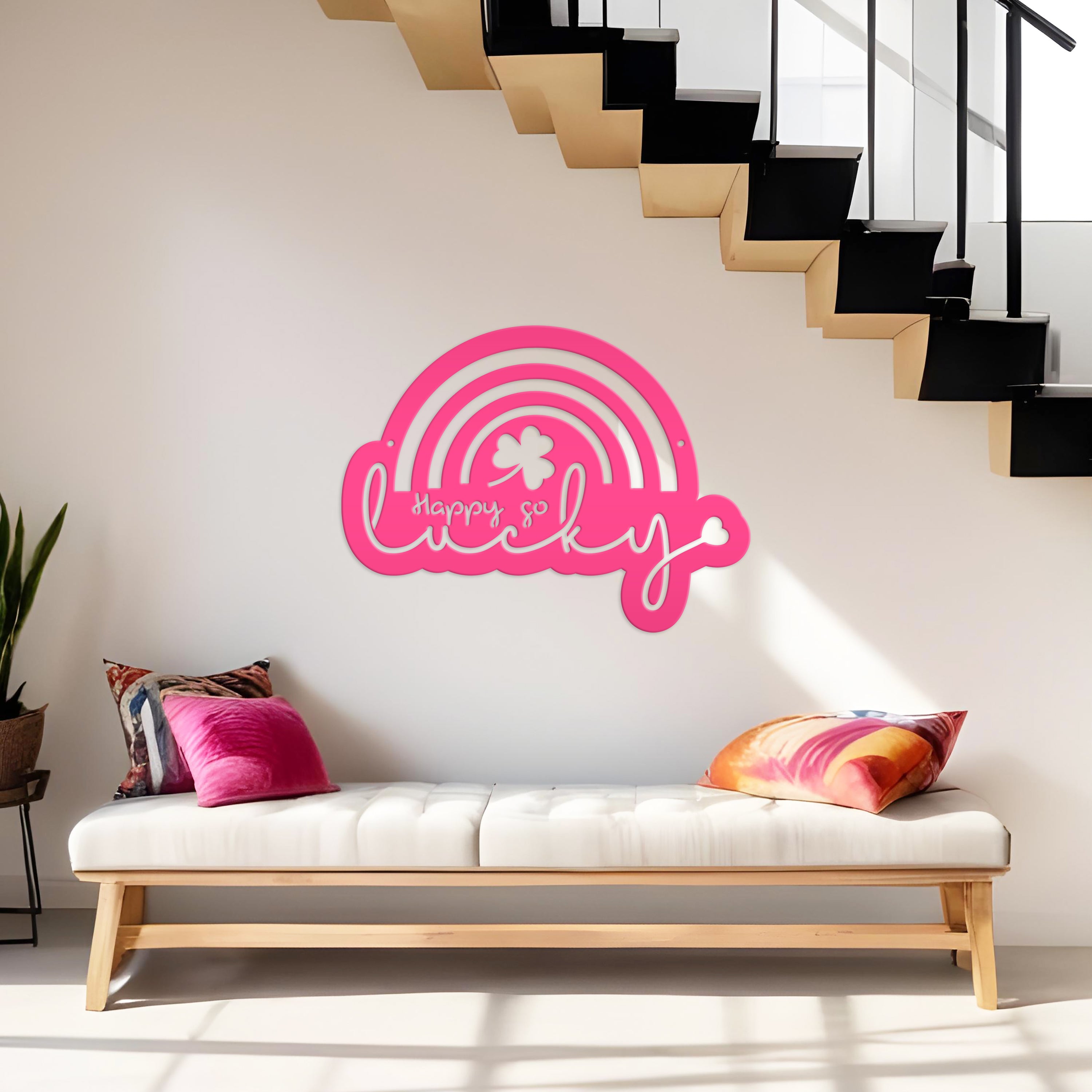 Add a touch of luck and charm to your St. Patrick's Day celebration with our Rainbow Happy Go Lucky Shamrock Metal Sign. Perfect for hanging on your wall, this piece of St Patty's Day decor features a vibrant rainbow design that will bring joy to any room. Celebrate with style and bring some Irish spirit into your home this St Patrick's Day!
