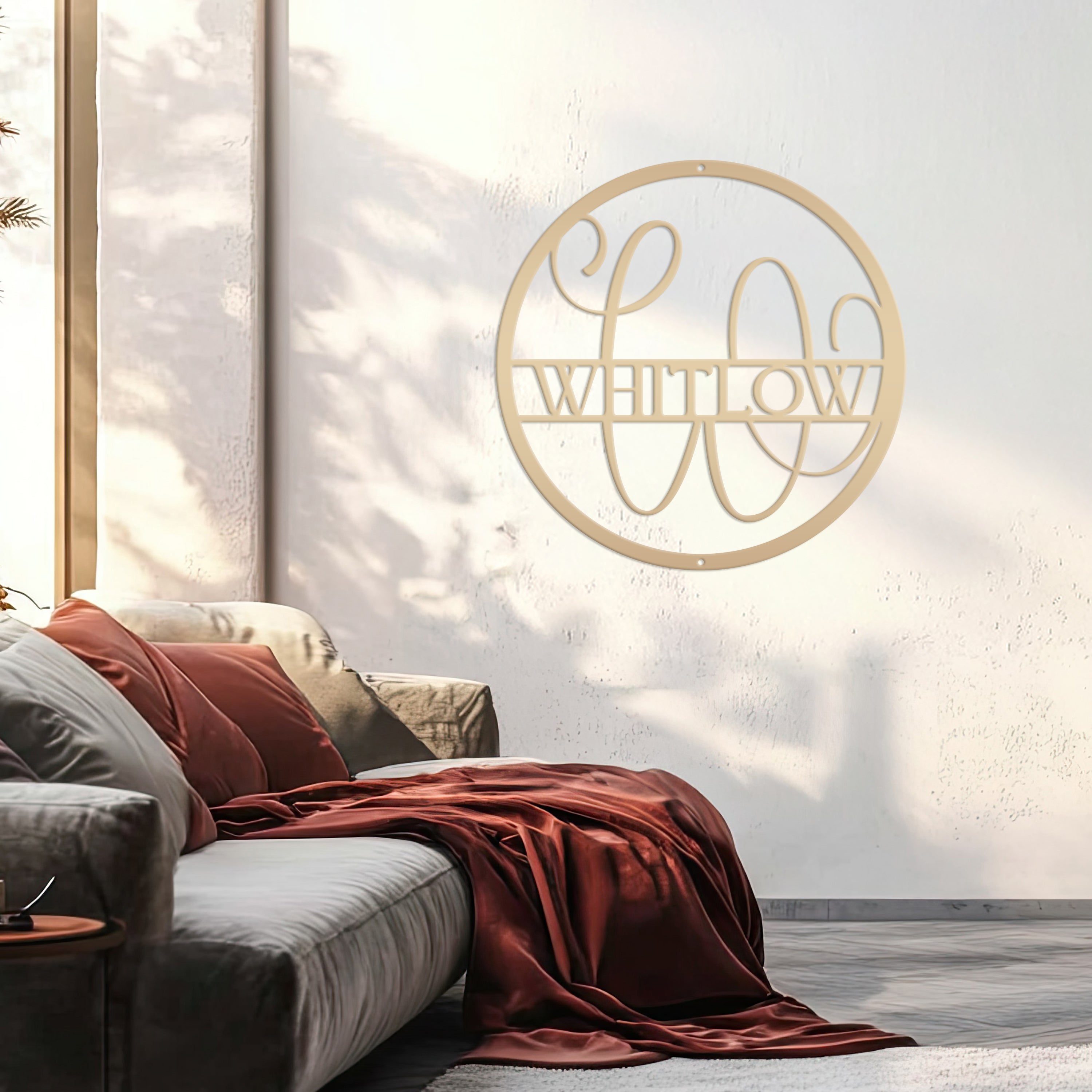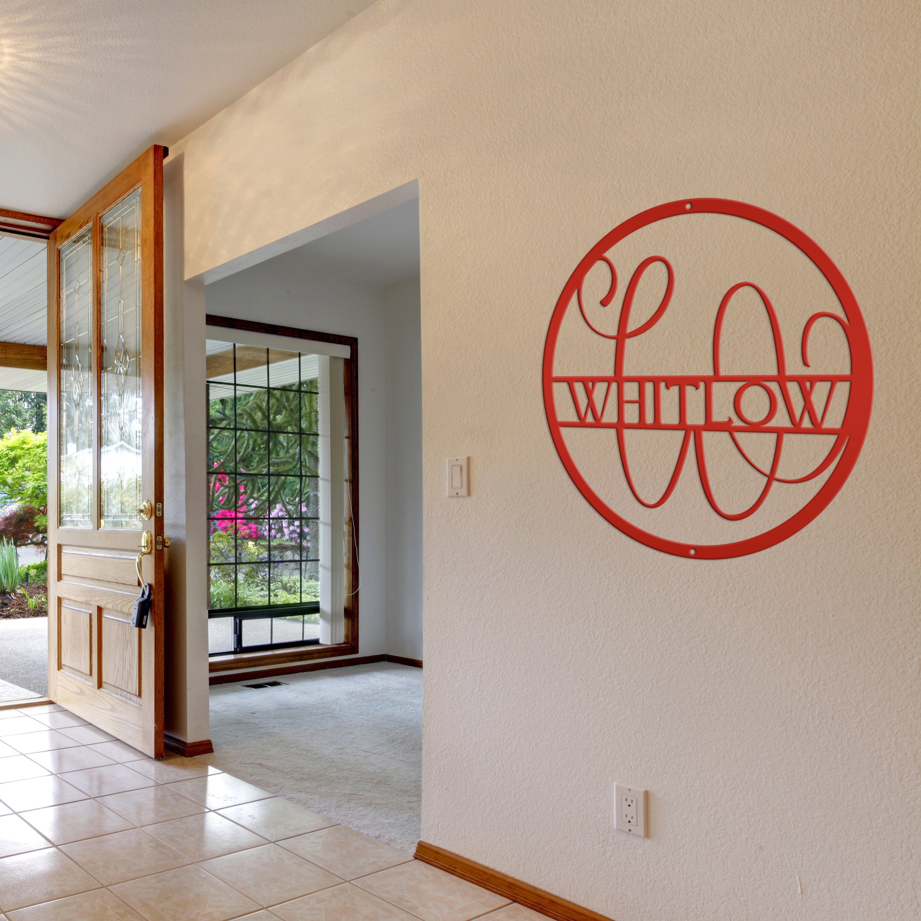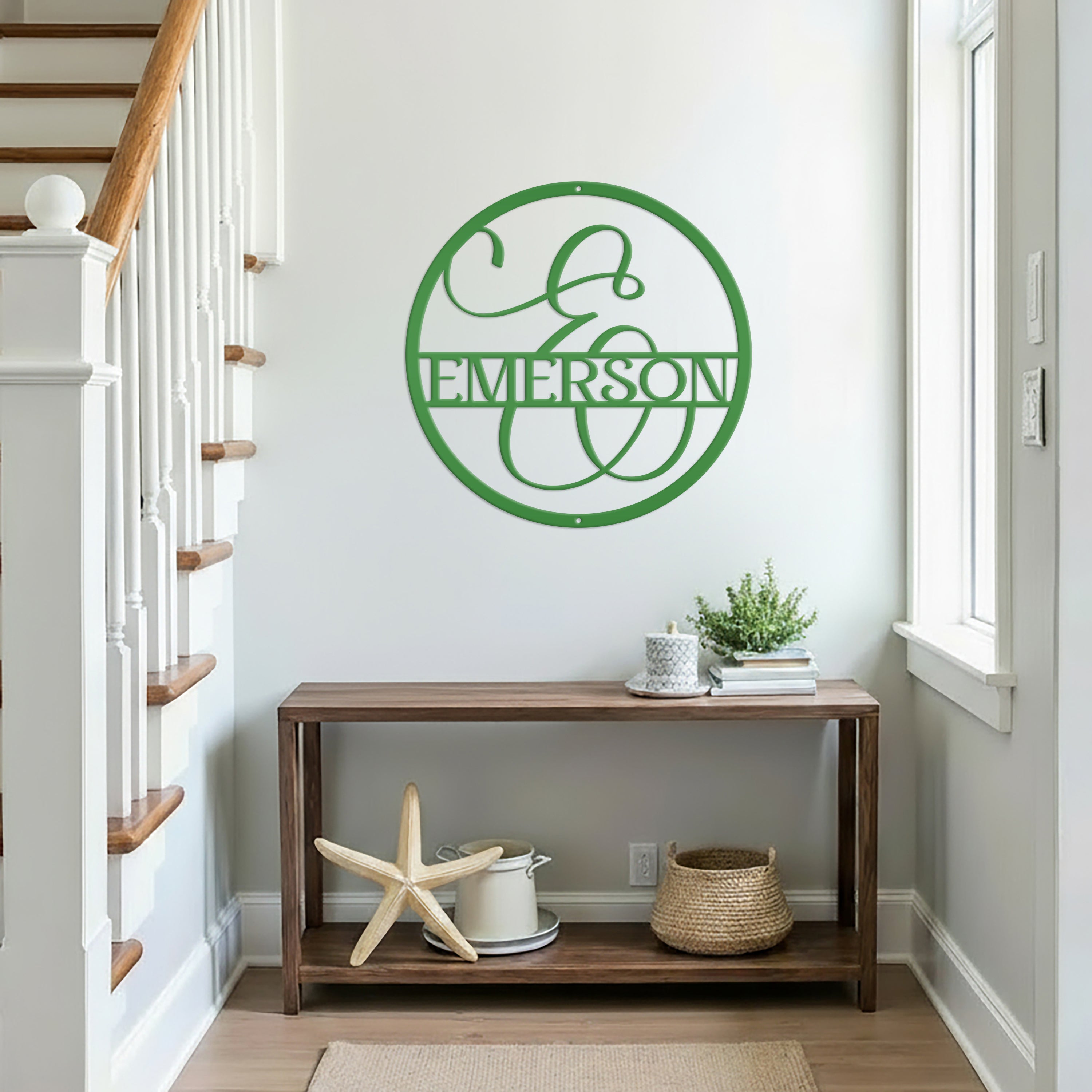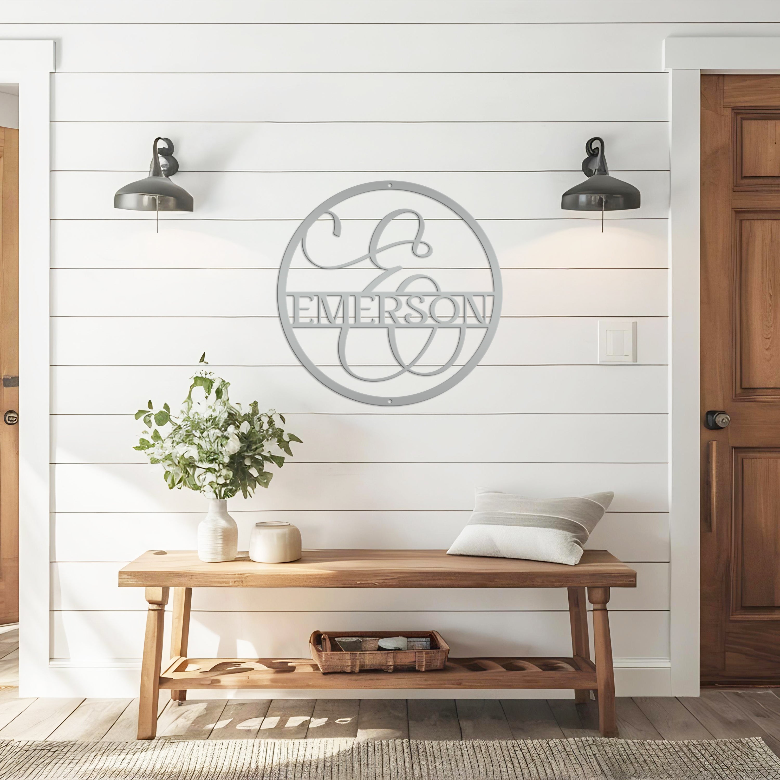 Elevate the entrance of your home with our Personalized Monogram Last Name Metal Sign. Perfect for newlyweds, this sign is a unique wedding or housewarming gift. Add a touch of elegance with a custom monogram and make it a statement piece for any front door. Elevate your home decor today.
