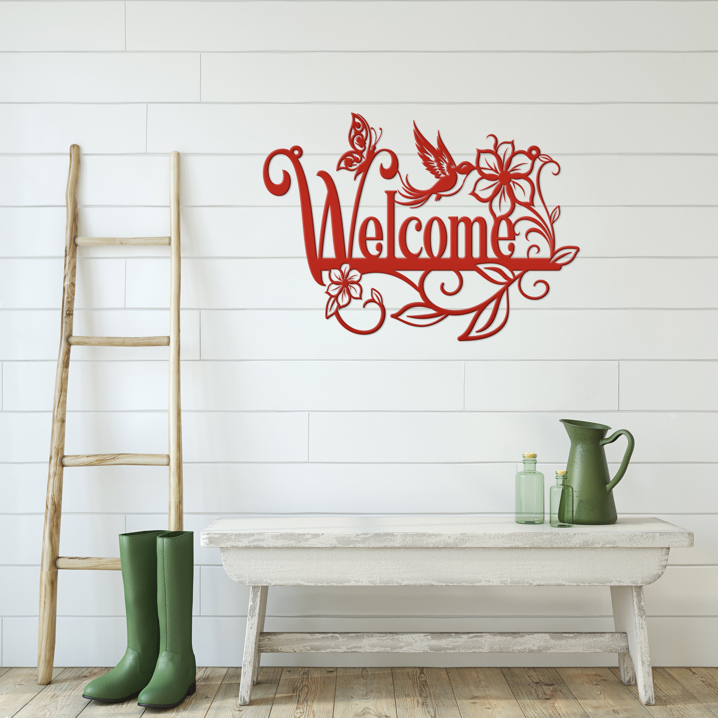 Flower Floral Garden with Butterflies and Hummingbird Welcome Sign,Floral Wall Decor & Wall Art, Outdoor Floral Signs, Mother's Day Gift, Gift for Gardener, Mother's Day Gift, Gift for Grandma , Gardener Gift, Garden Art, Lawn Art