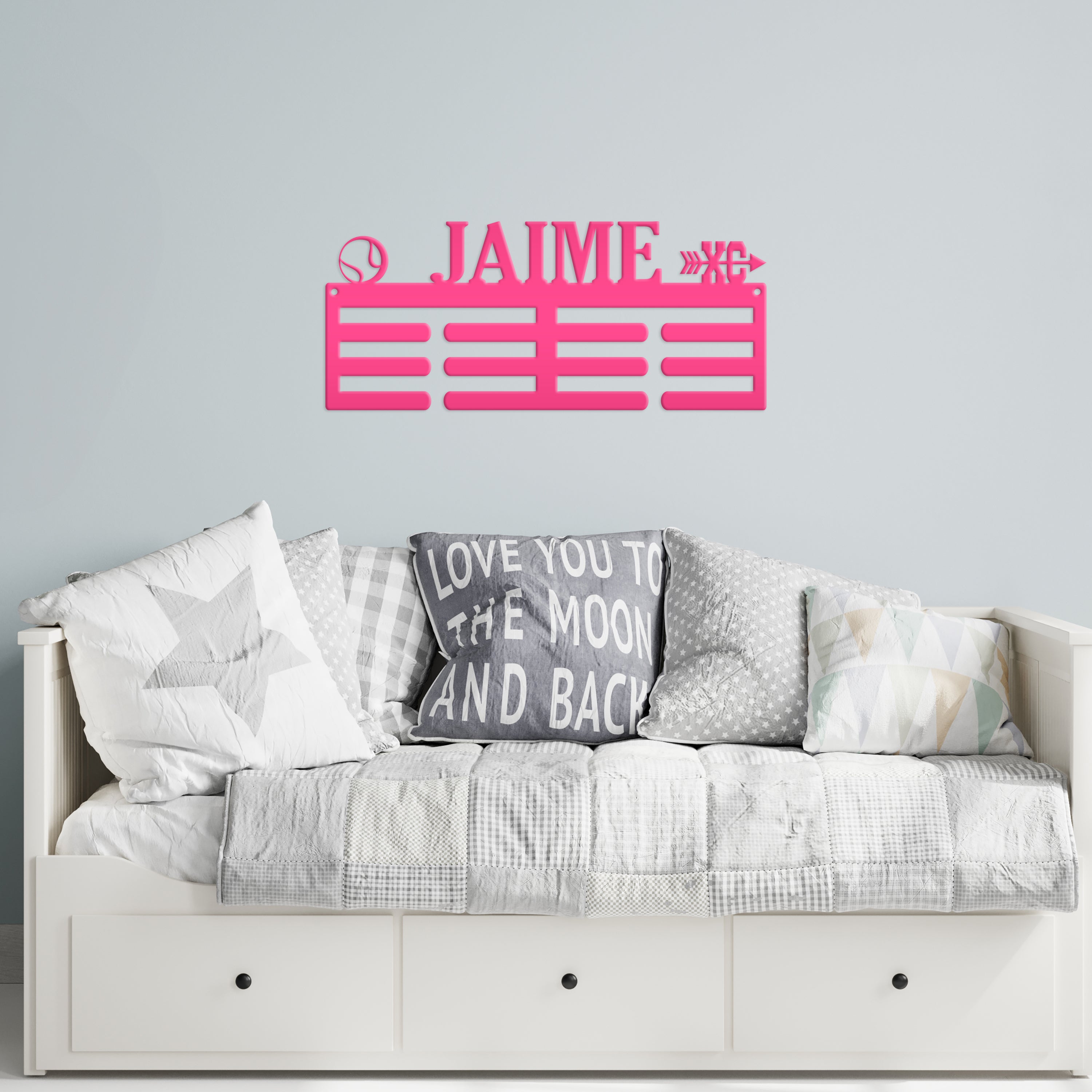 Display your proud achievements with this versatile 2 sports awards medal holder. Keep your hard-earned medals organized and beautifully showcased. A perfect addition to any sports enthusiast's collection. Great for gifting too!