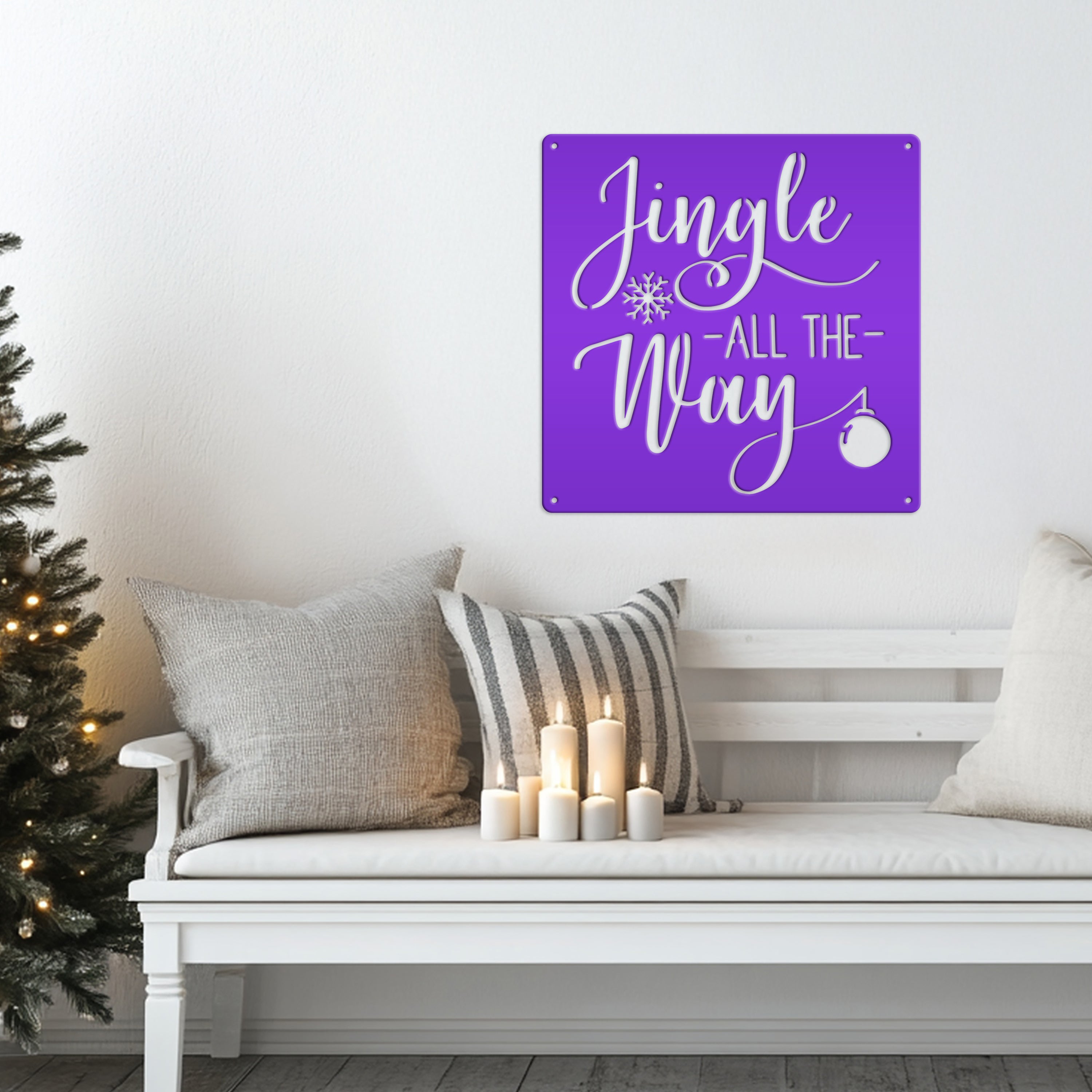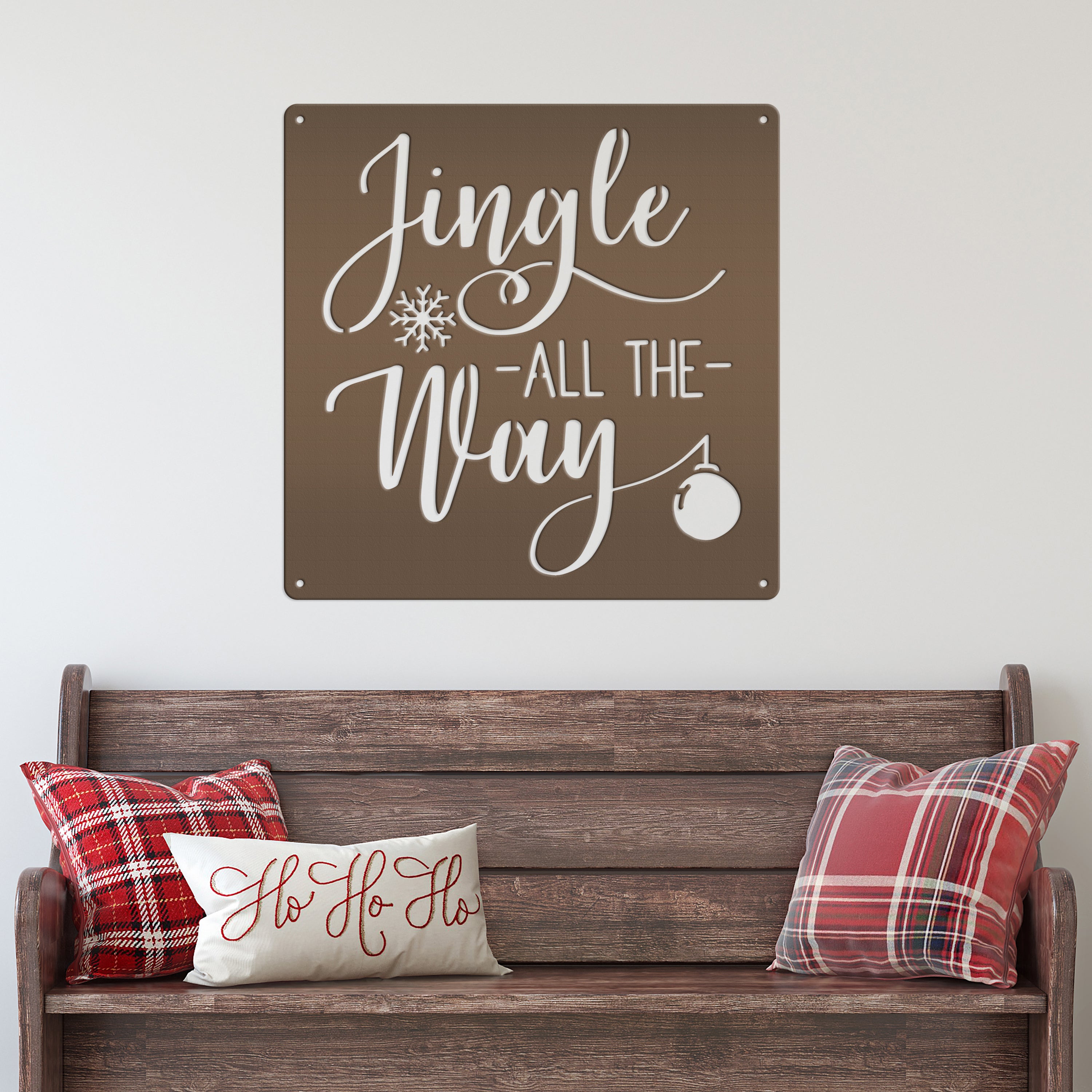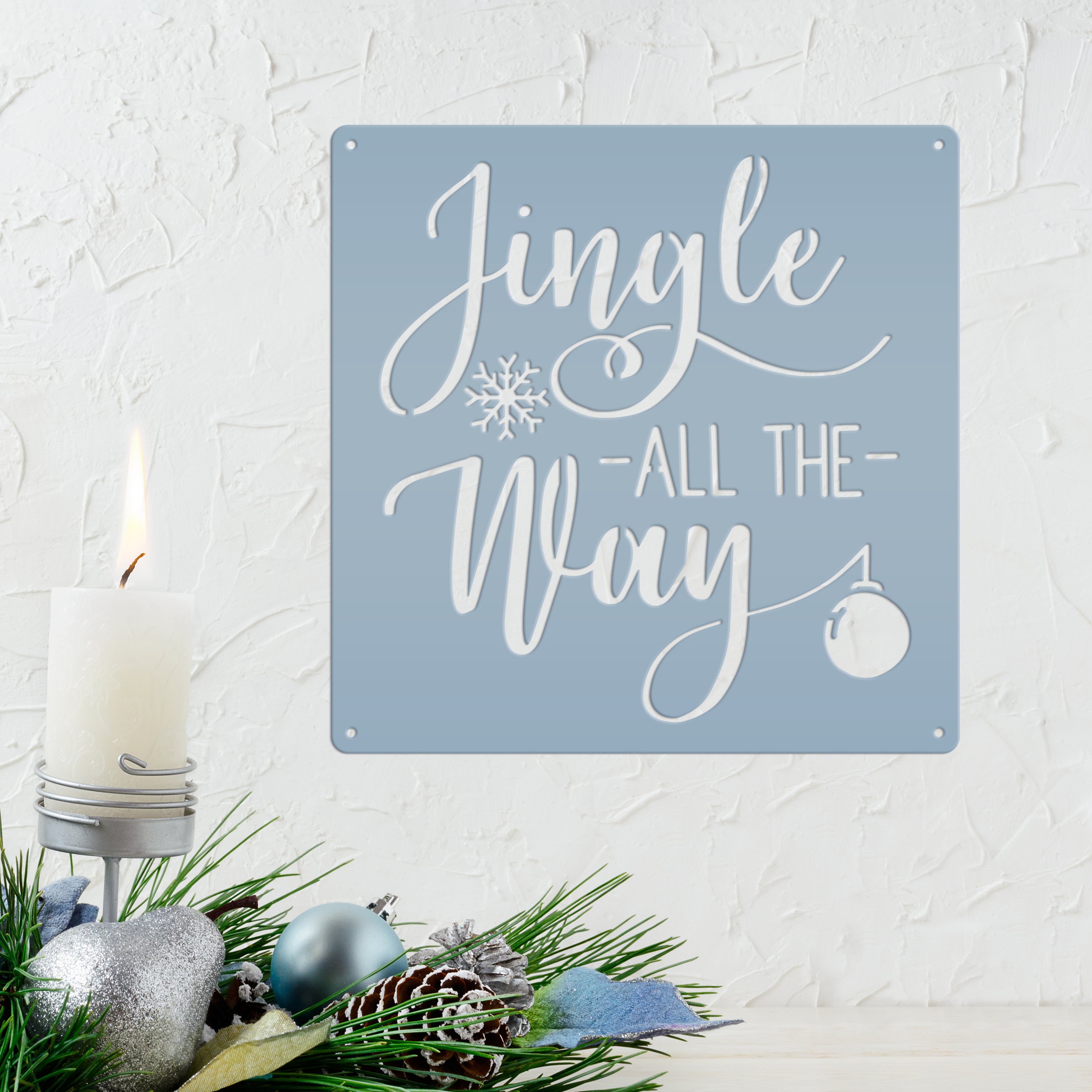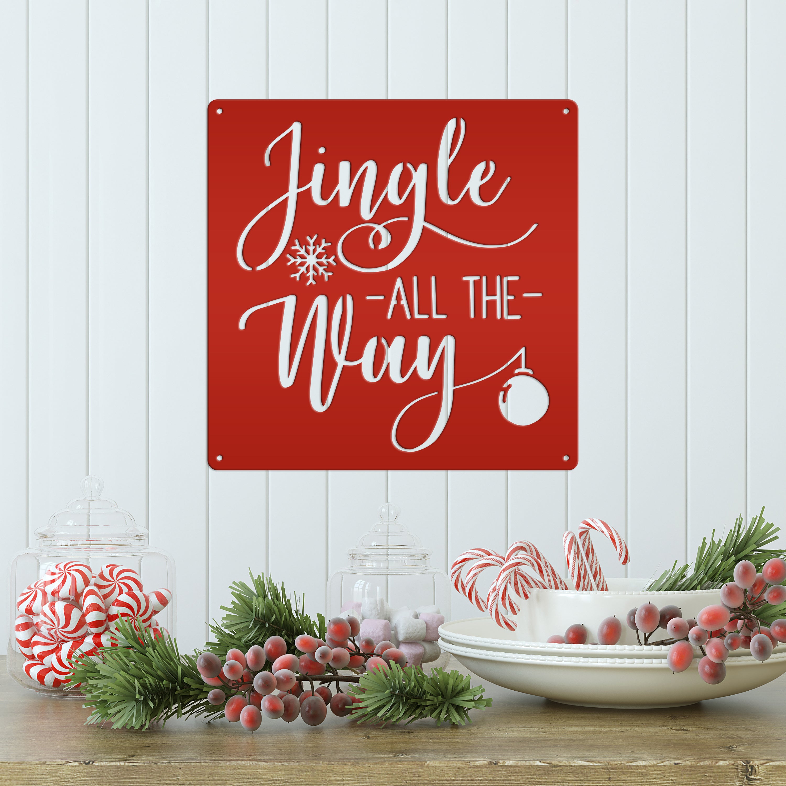 Our Jingle All the Way Christmas Metal Sign is the perfect Christmas decor for any home. It's the perfect way to add holiday cheer to your walls, with a fun phrase that will make your guests smile! It's the perfect way to show your Christmas spirit and get your guests in the spirit of the season.