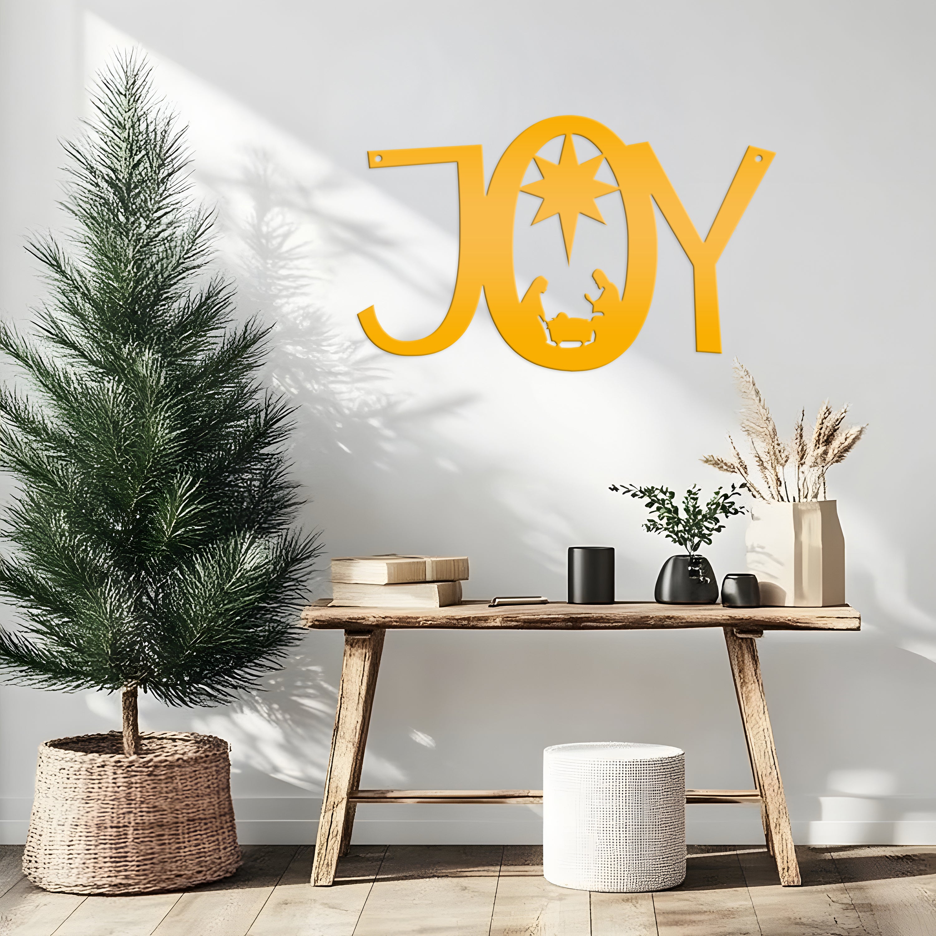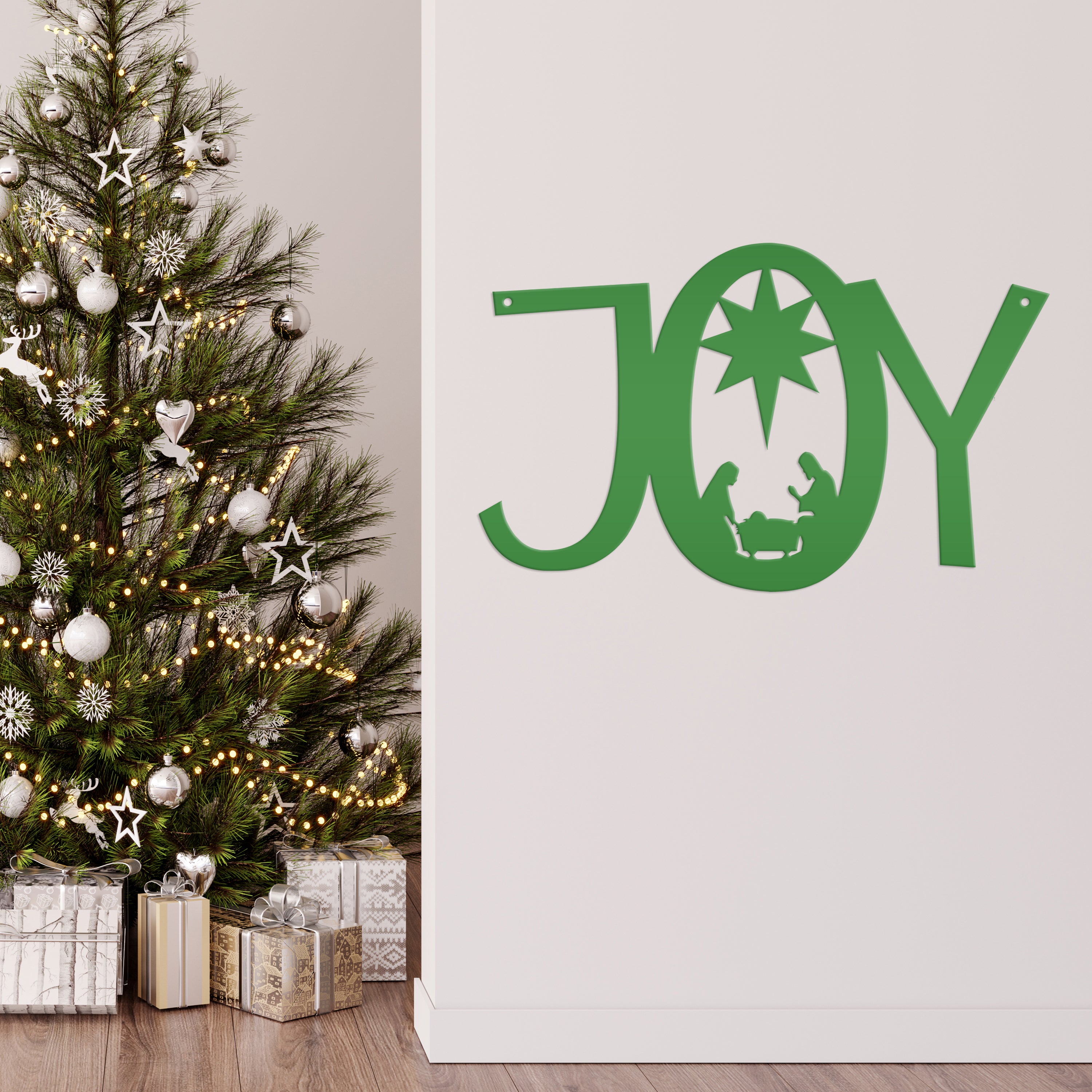 Joy Nativity Christmas Metal Sign is the perfect Christmas décor for any home. This décor piece is sure to bring holiday cheer and add some sparkle to your home! From its classic shape to its eye-catching design, this metal sign is a festive statement piece for the holiday season.
