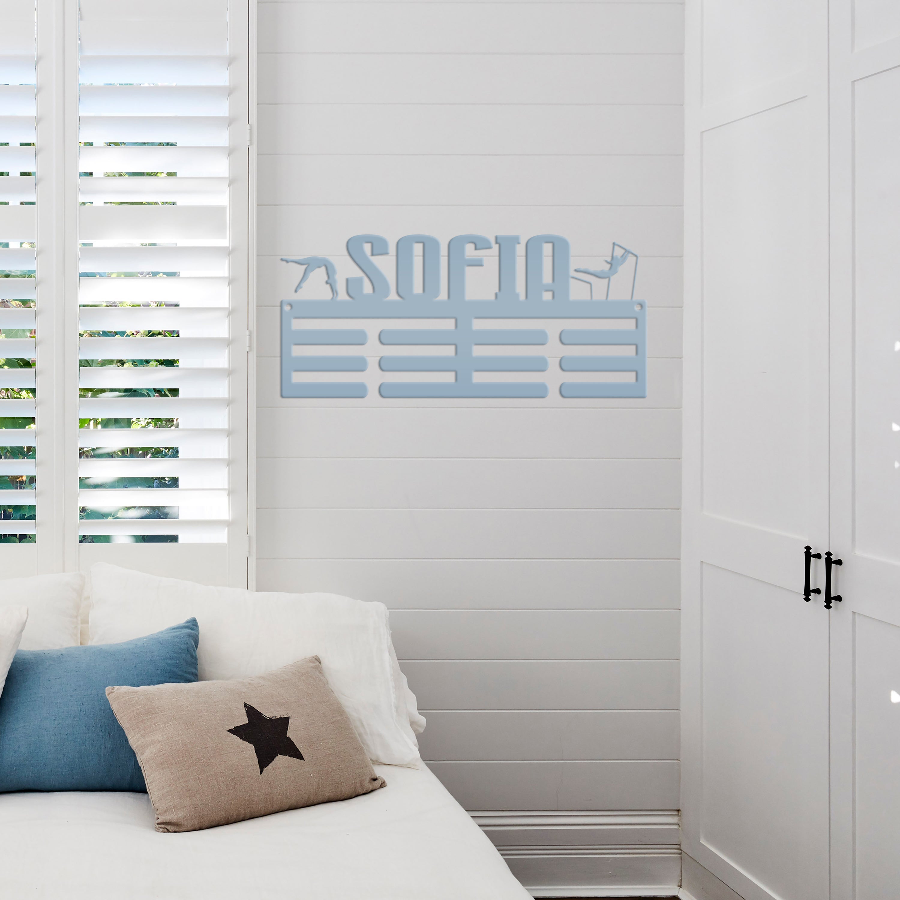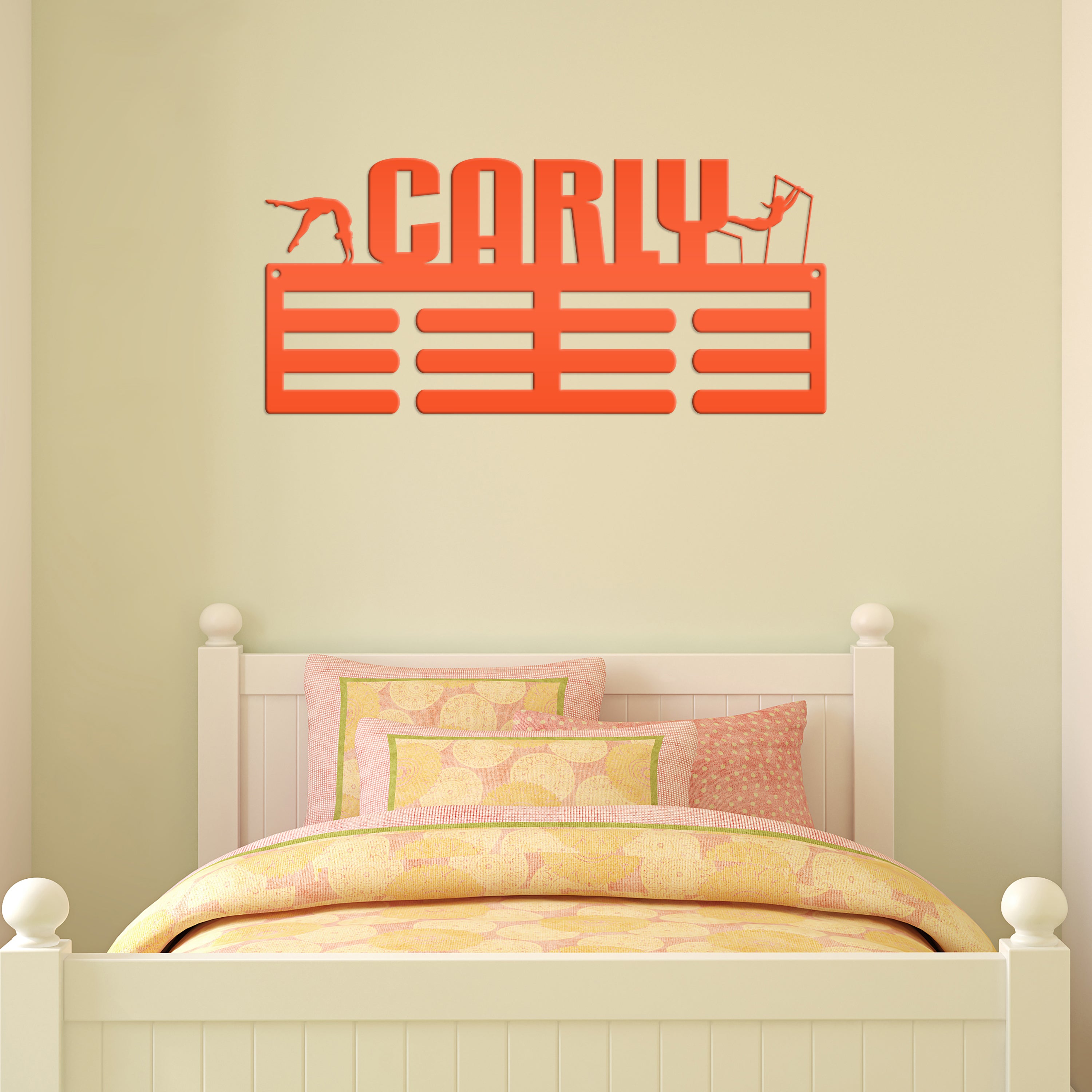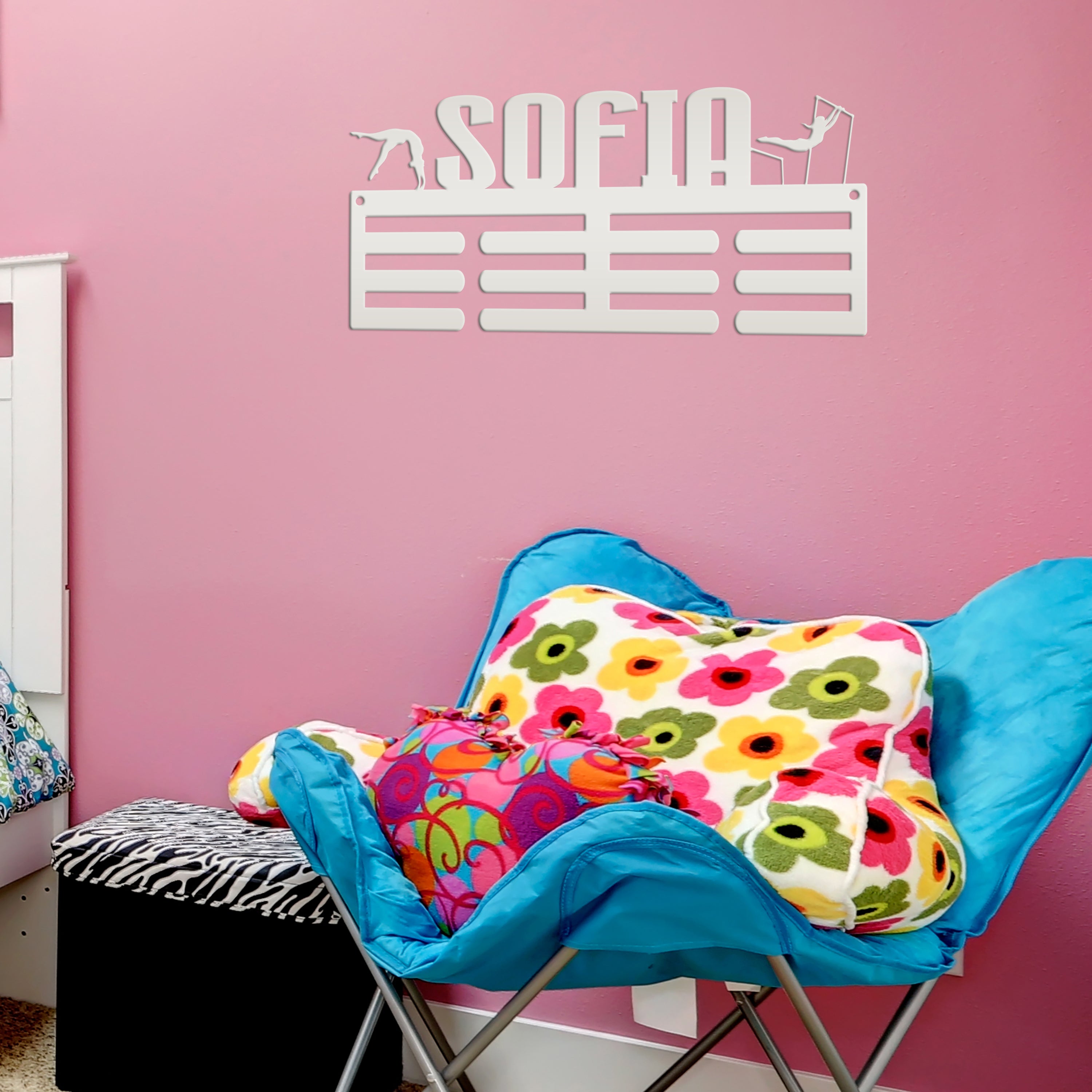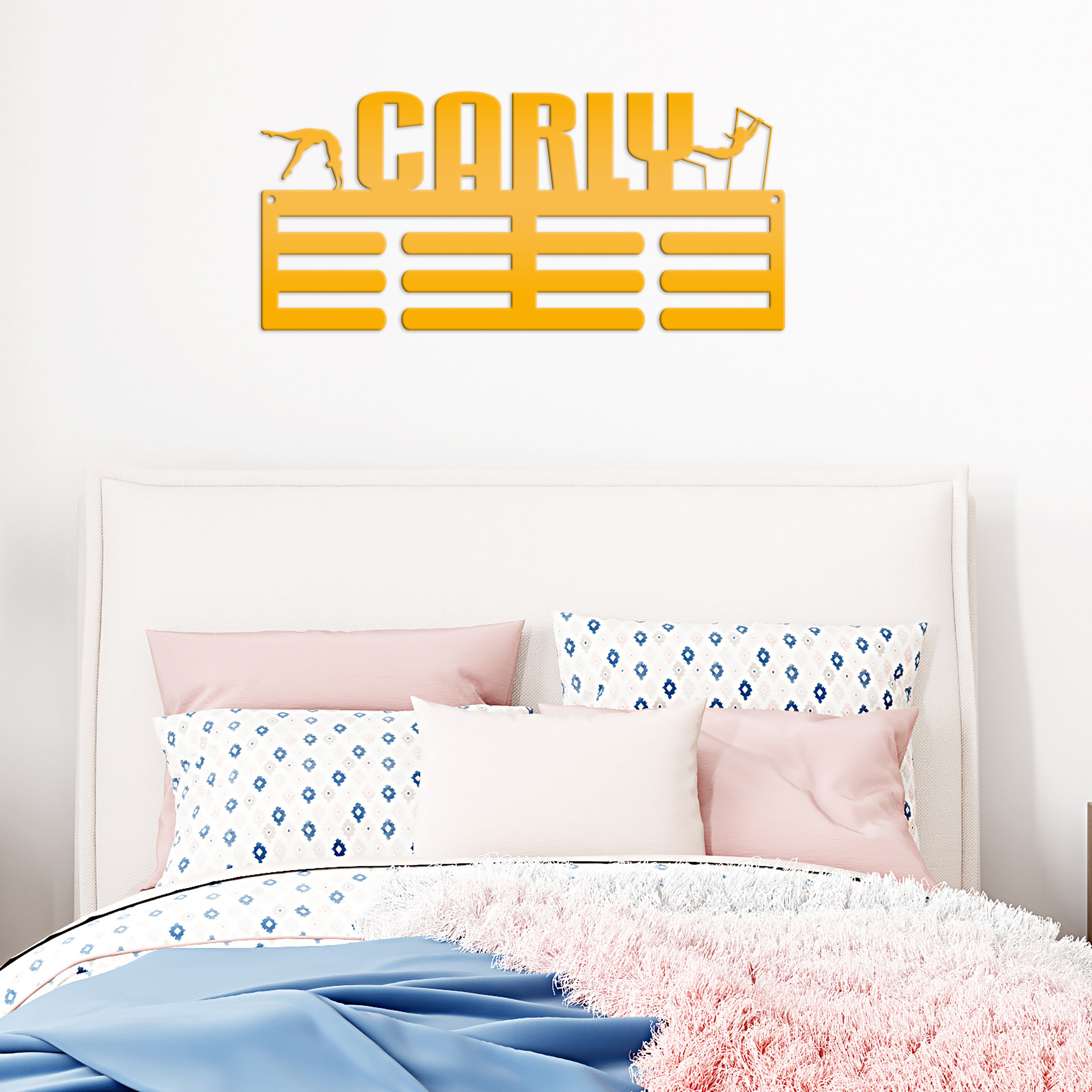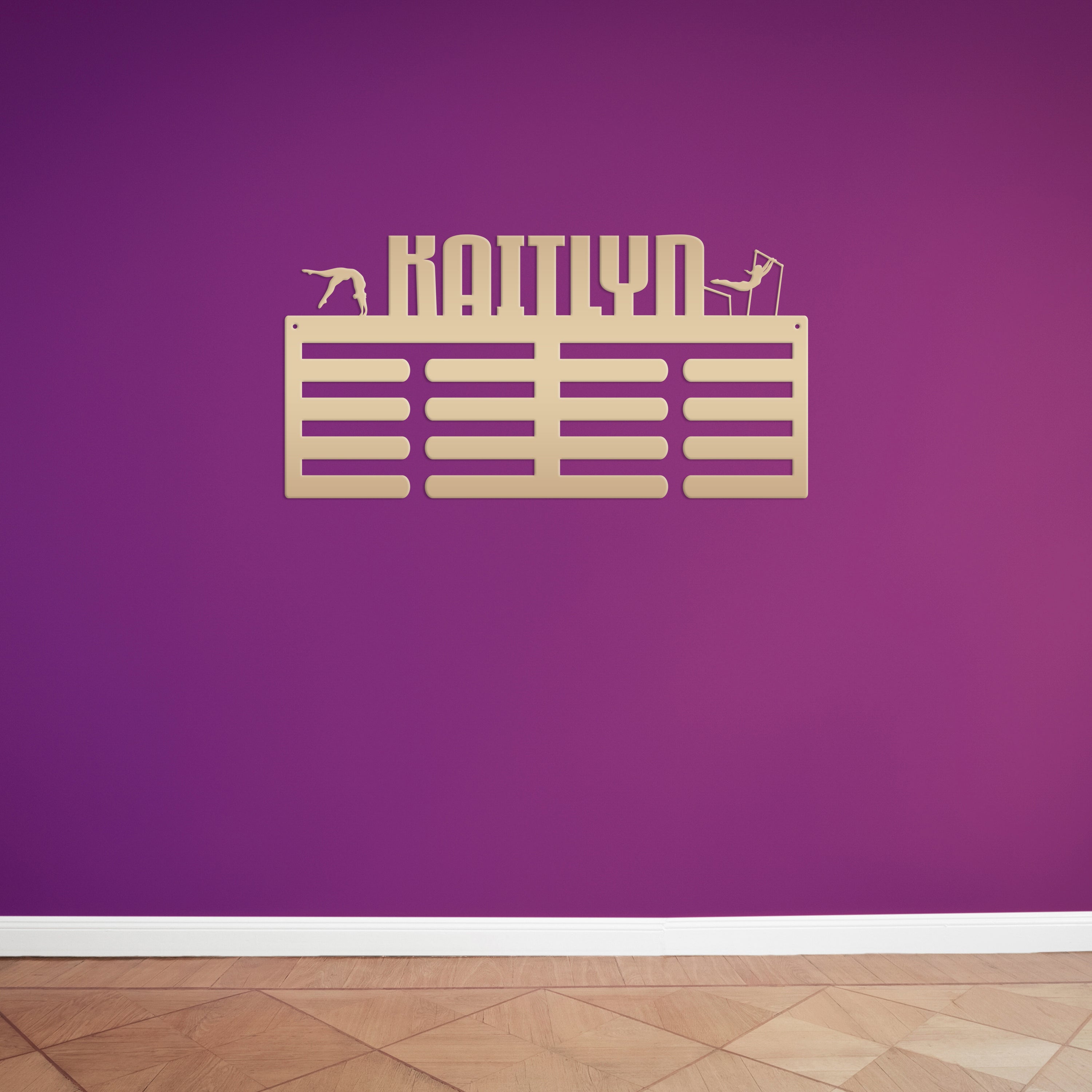 We love this exquisite Medal Hanger, a must-have Custom Name sign for the Gymnast in your life! Crafted from premium metal, this Awards Rack showcases all achievements with utmost elegance for that special gymnast. A truly special Gift Idea for hardworking athlete, this stunning piece will inspire and motivate. Grab this unique treasure today!